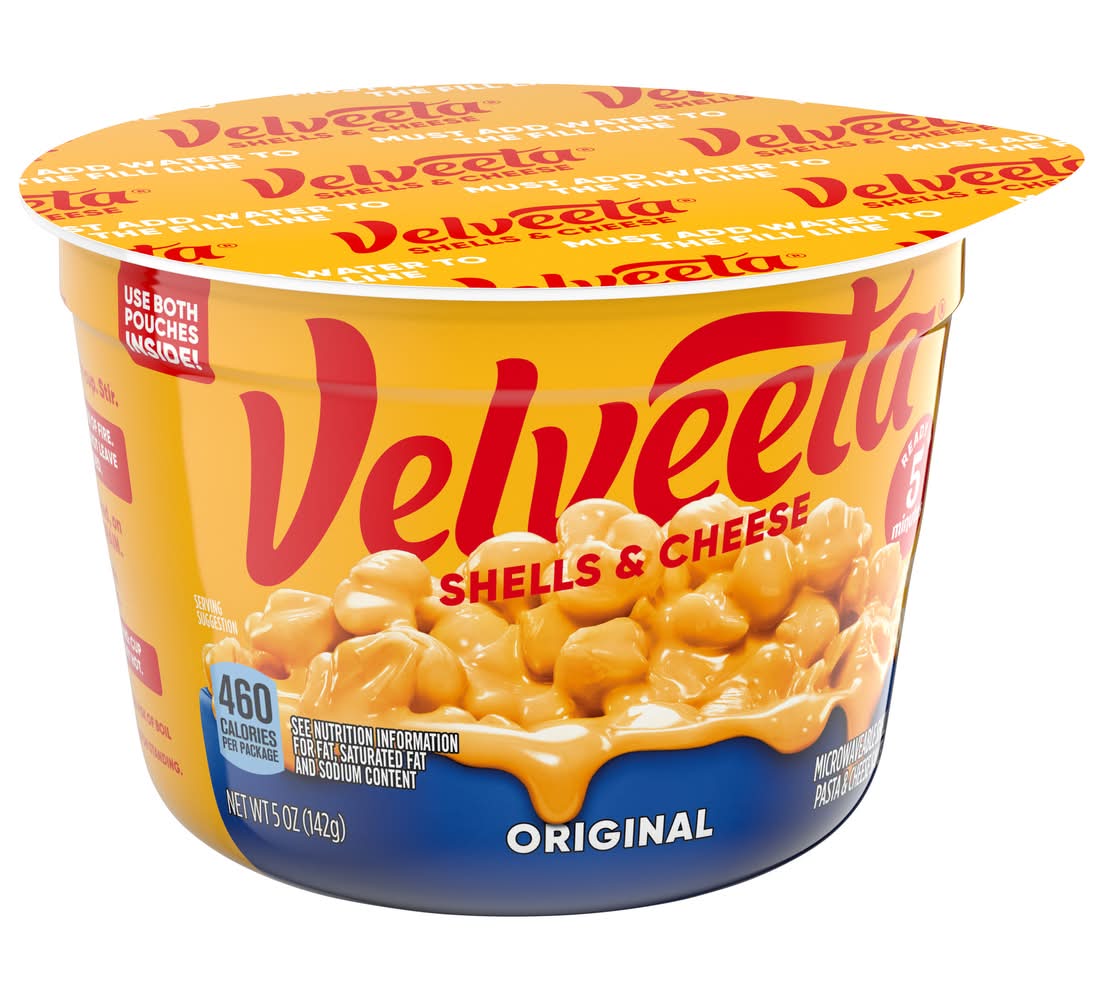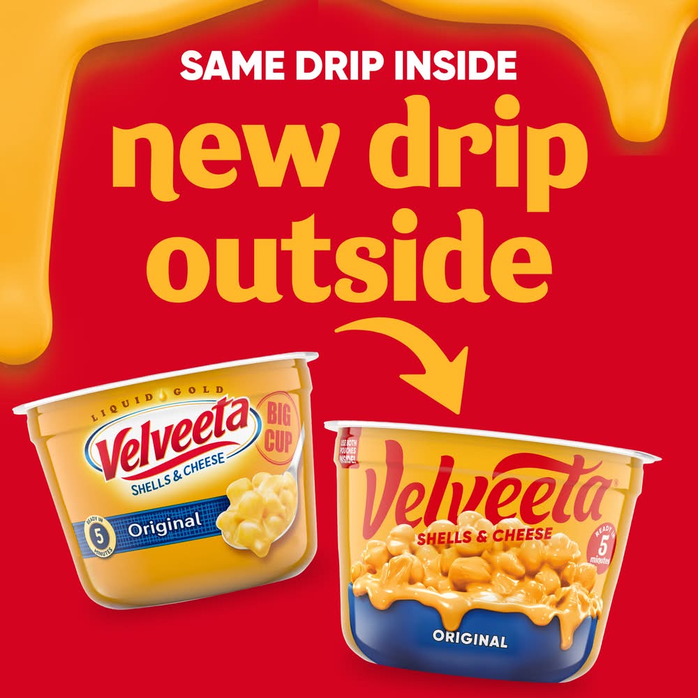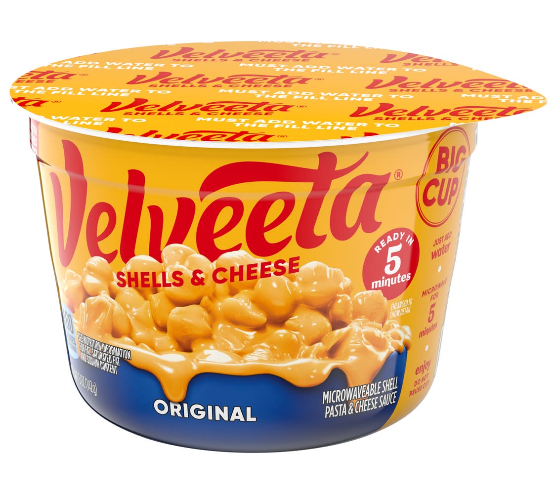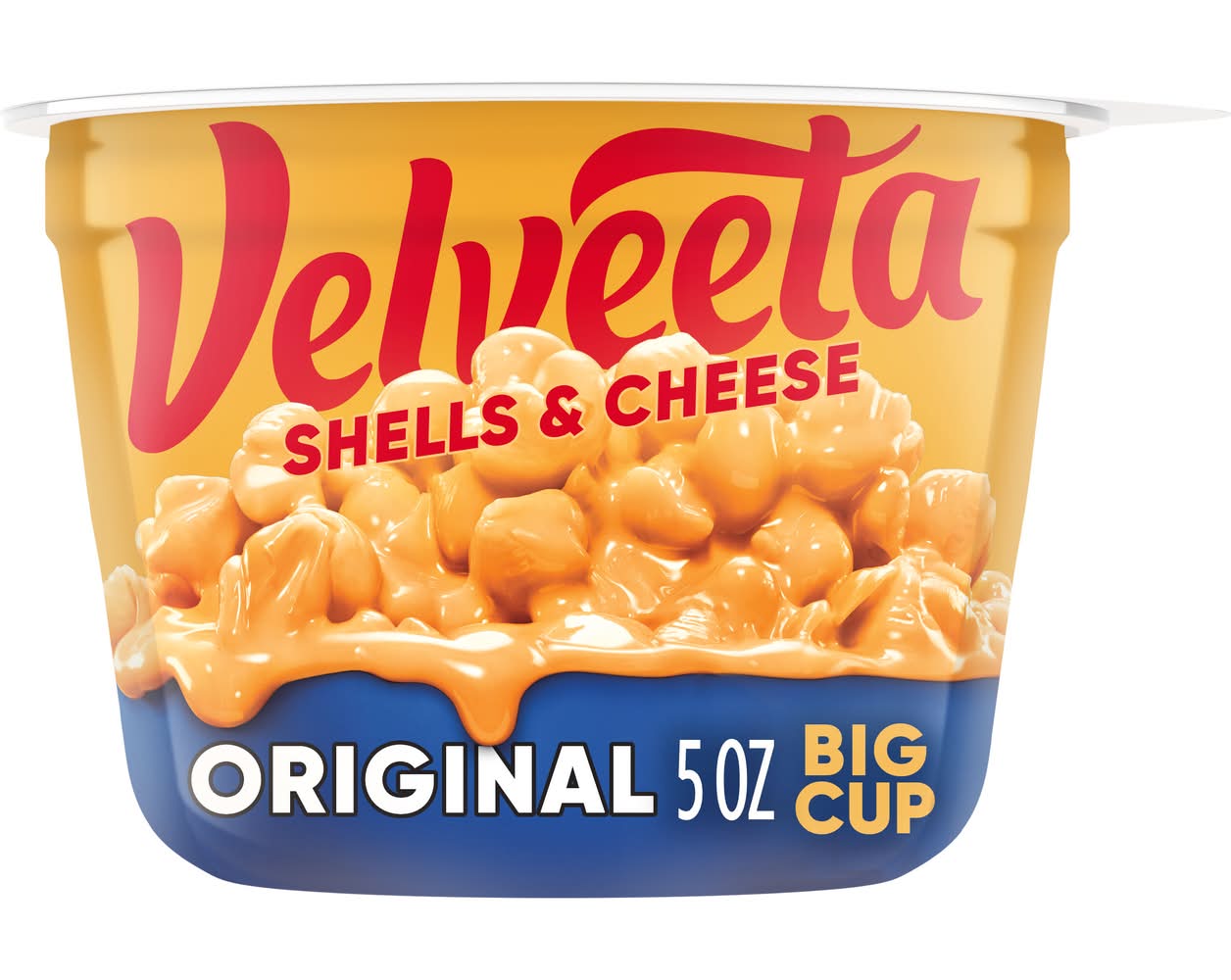 Shell yeah! Live life to the creamiest with Velveeta Shells & Cheese Original Microwaveable Big Cup. When your drip is as smooth as ours, you don’t waste time when it comes to delicious indulgence. For instant cheesy gratification, our original recipe hits the mark, with iconic, velvety meltability and tender pasta shells that grip the drip like no other. Velveeta’s supremely creamy texture and rich, savory taste satisfy your cravings any day of the week. Amp things up by customizing our cheesy pasta with added veggies, meat, toppings or seasonings. Sometimes unnecessary is necessary, so kick back, relax and embrace the flavor. Whether it’s in the form of a snack, side dish or entree, preparing our luxuriously convenient single-serve Velveeta Shells and Cheese Big Cup is a breeze. Simply peel back the top, remove sauce pouch, add water up to the fill line, microwave for 5 minutes, stir in the liquid gold cheese sauce and enjoy, unapologetically. That’s La Dolce Velveeta! Number of servings: 1