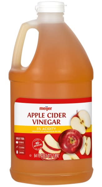 Meijer Apple Cider Vinegar, available in a 64 oz bottle, is a versatile ingredient ideal for a variety of applications. It is well-suited for creating zesty salad dressings, pickling vegetables, and adding a tangy twist to chicken dishes. Additionally, it can be diluted to formulate a cleaning spray, making it a useful addition to both kitchen and household cleaning supplies.