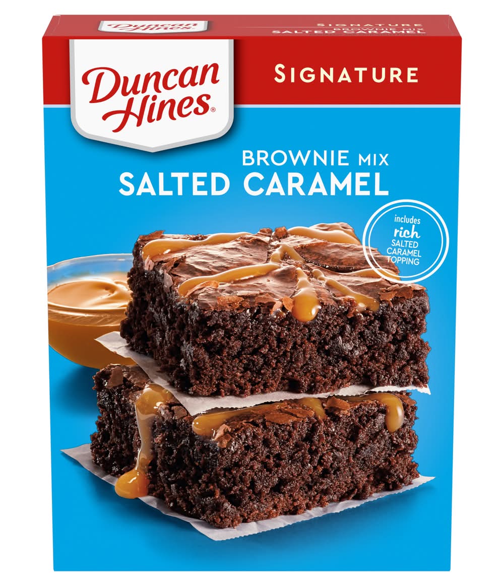 Makes rich and chewy brownies with rich salted caramel topping that are sure to become a family favorite. The smooth and velvety brownie batter makes it easy to bake perfect fudge brownies every time. Simply add water, egg and vegetable oil to the baking mix and stir to combine. Pour into a pan and bake for the recommended time in the instructions. Prepare this brownie mix to make decadent brownies with frosting or drizzle with caramel for extra special desserts. You can also use it to make fun creations like brownie bites that make great snacks and treats for sharing. This boxed brownie mix fills one 8 x 8 or 9 x 9 inch baking dish. From decadent baked goods to delicious frostings and fillings, Duncan Hines has you covered when you're ready to bake and create. Bake someone happy! • Conagra Brands, PO Box 3534,Chicago,IL,60654 • Packaging: Reusable