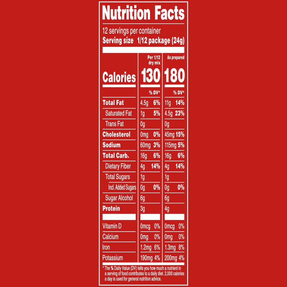 Ingredients: Almond Flour, Erythritol (Sensitive Individuals May Experience a Laxative Effect from Excessive Consumption of These Ingredients), Allulose (Sensitive Individuals May Experience a Laxative Effect from Excessive Consumption of These Ingredients), Coconut Flour, Chicory Root Fiber (Inulin (Sensitive Individuals May Experience a Laxative Effect from Excessive Consumption of These Ingredients)), Cocoa Powder Processed with Alkali, Unsweetened Chocolate, Contains Less than 2% of: Resistant Dextrin, Modified Tapioca Starch, Leavening (Cream of Tartar, Baking Soda), Salt, Cocoa Powder, Cocoa Butter, Xanthan Gum, Natural Flavor, Nonfat Dry Milk, Stevia Sweetener (Steviol Glycosides), Soy Lecithin, Steviol Glycosides Vanilla Extract, Whole Milk Powder. Contains: Milk, Soybeans, Tree Nuts, Gluten