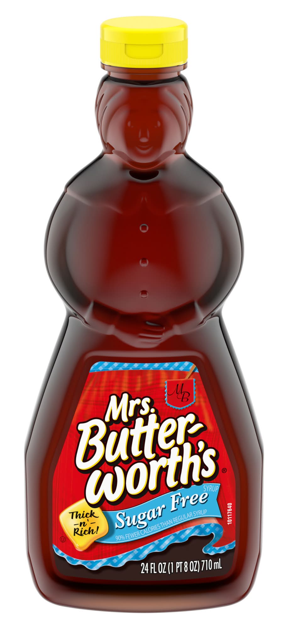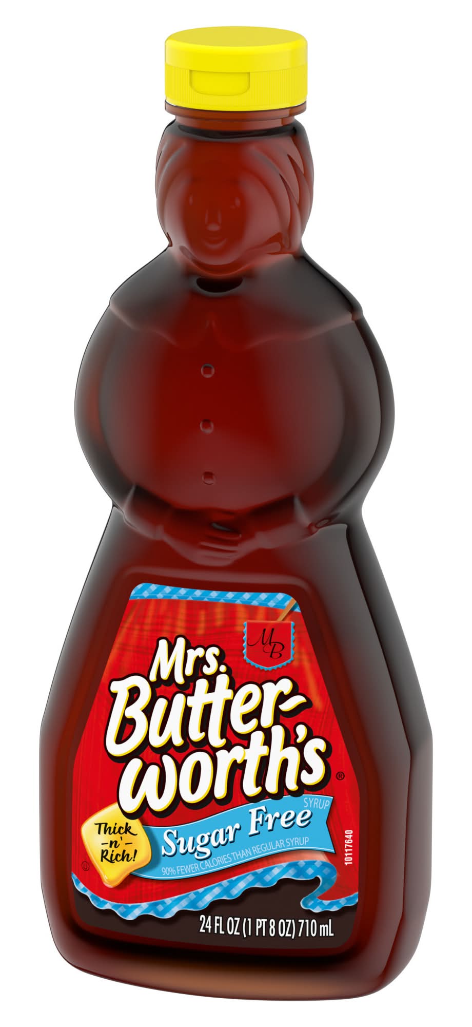 Indulge in thick, rich deliciousness and no sugar with Mrs. Butterworth's Thick and Rich Sugar Free Pancake Syrup. This sugar free syrup is a sweet and satisfying topping for all of your favorite breakfast foods, like buttermilk pancakes, Belgian waffles and even oatmeal or Greek yogurt. Great for more than just breakfast food, this syrup is also perfect for adding to a variety of recipes. This squeezable 24 fl oz syrup bottle of Mrs. Butterworth's syrup makes topping your pancakes and waffles easy and mess-free and contains enough syrup for multiple servings. Pancakes and waffles just aren't complete without the amazing flavor of Mrs. Butterworth's. So thick, so rich and still just as sweet... that's Mrs. Butterworth's. • Conagra Brands, P.O. Box 3534, Chicago, IL, 60654 • Packaging: Reusable