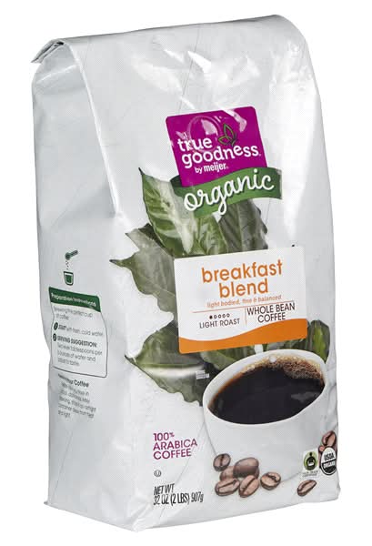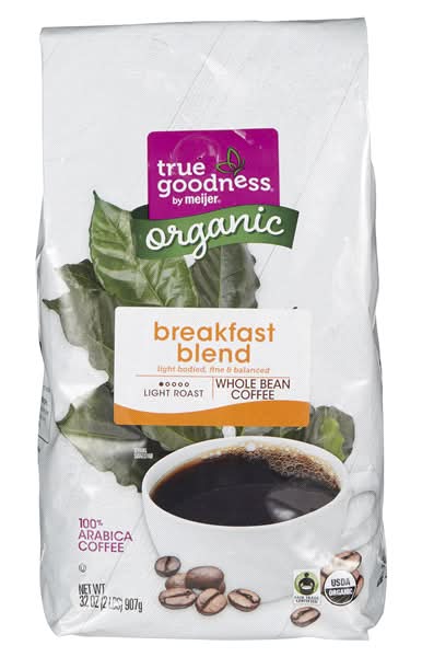 Fresh. Balanced. Light. Fair Trade Certified. What else could you want in a Light roast coffee? Youll feel good about your day after drinking a delicious cup of Meijer True Goodness Organic Breakfast Blend Whole Bean Coffee.