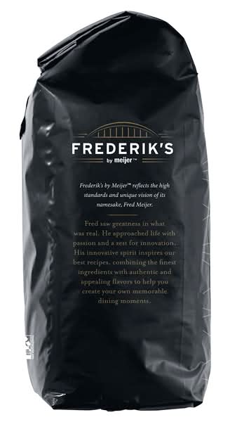 Frederiks By Meijer French Roast Whole Bean Coffee offers a dark roast profile, specifically crafted to appeal to those who prefer bold flavors. The coffee is characterized by a heavy body and features notes of rich chocolate. Keeping the beans whole ensures a fresh, smooth experience with every cup. This product is designed to cater to enthusiasts of robust and rich coffee experiences.