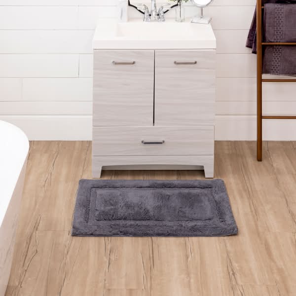 Room & Retreat Cotton Border Bath Mat Dk Grey 20" x 34"