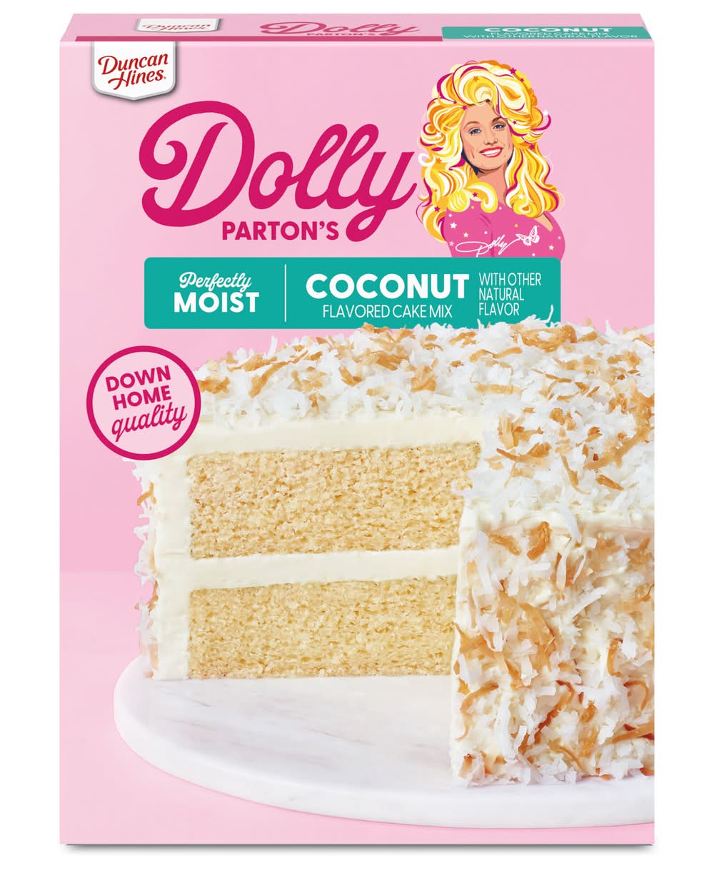 Create decadent coconut desserts in the comfort of your own kitchen with Duncan Hines Dolly Parton's Favorite Coconut Cake Mix. Enjoy mouthwatering coconut cake, perfect for special occasions and celebrations or whenever your sweet tooth calls. For even more fun, you can make Dolly's Extra Special Coconut Cake recipe featured on the box, or let creativity guide you and add your own spin to this tasty coconut cake mix. Whether you are preparing a coconut dessert for after dinner or the centerpiece for a fun-filled birthday bash, this perfectly moist boxed cake mix is the ideal start to your creation. Duncan Hines and Dolly: That's a sweet combination! Flavor: Coconut