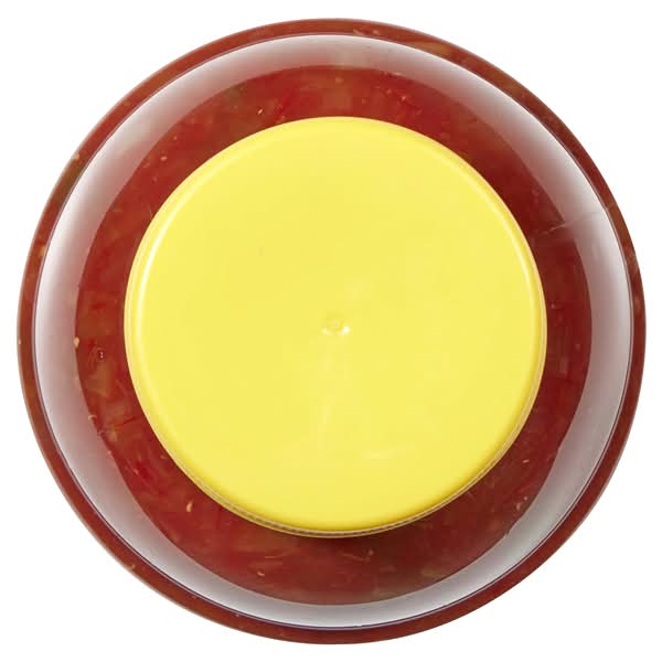 Characterized by its mild flavor profile. The salsa's consistency is thick and chunky, making it suitable for use in various dishes, such as tacos or as a dip. It features a blend of onion, garlic, and tomato flavors, with jalapeno peppers added to provide a slow heat experience.