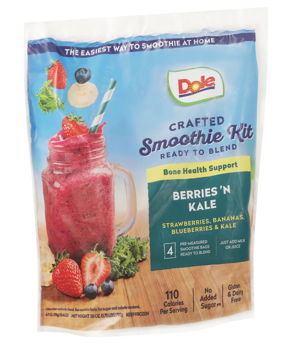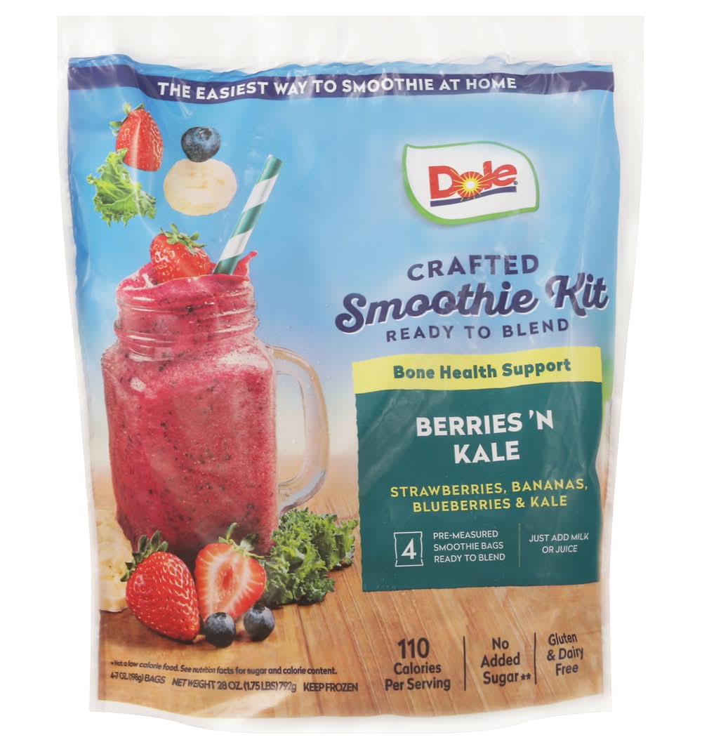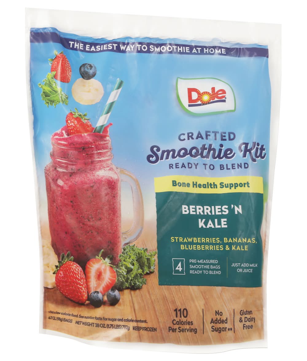 Dole Crafted Berries 'N Kale Smoothie Mix, Assorted (7 oz, 4 ct)
