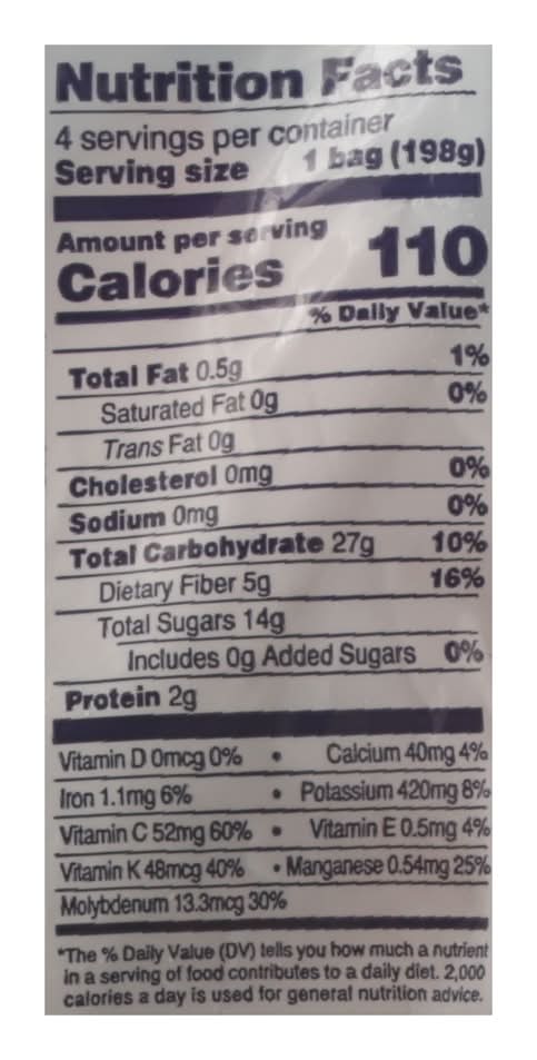 Ingredients: Strawberries, Bananas, Blueberries, Kale, Ascorbic Acid (Vitamin C) to Promote Color Retention, and Citric Acid