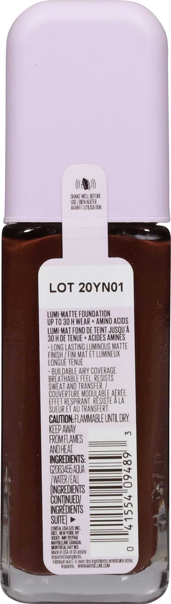 Maybelline Up To 30 Hour Wear Lumi-Matte Foundation, 405 Brown (1 fl oz)
