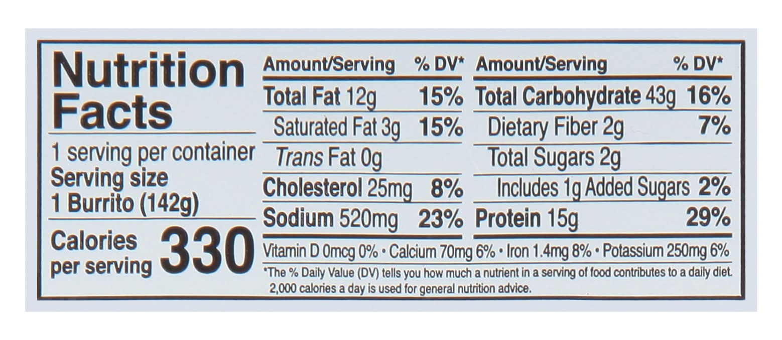Frozen chipotle bean burrito Flavor: Beef & bean