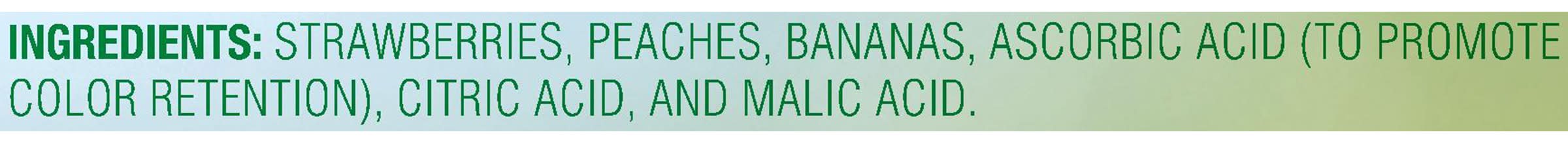 Ingredients: Strawberries, Peaches, Bananas, Ascorbic Acid (to Promote Color Retention), Citric Acid, and Malic Acid