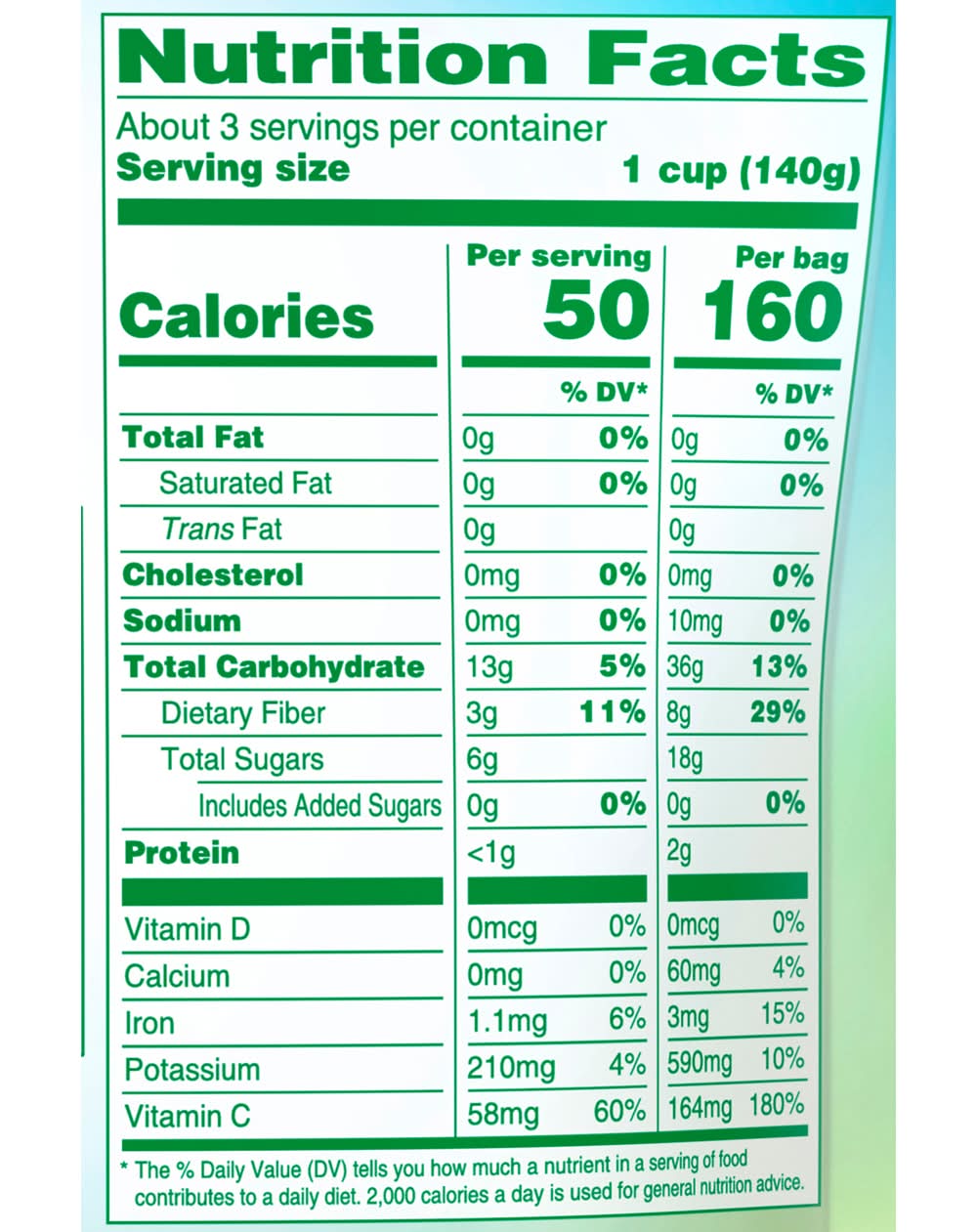 Directions for use: Microwave: Thawing Instructions Thaw desired amount on plate at room temperature for approximately 30 minutes or place in microwave-safe dish and thaw on Defrost setting for 1 minute. Serve slightly frozen. Do not refreeze. Keep frozen. Tear to open. Storage recommendation: Keep frozen.