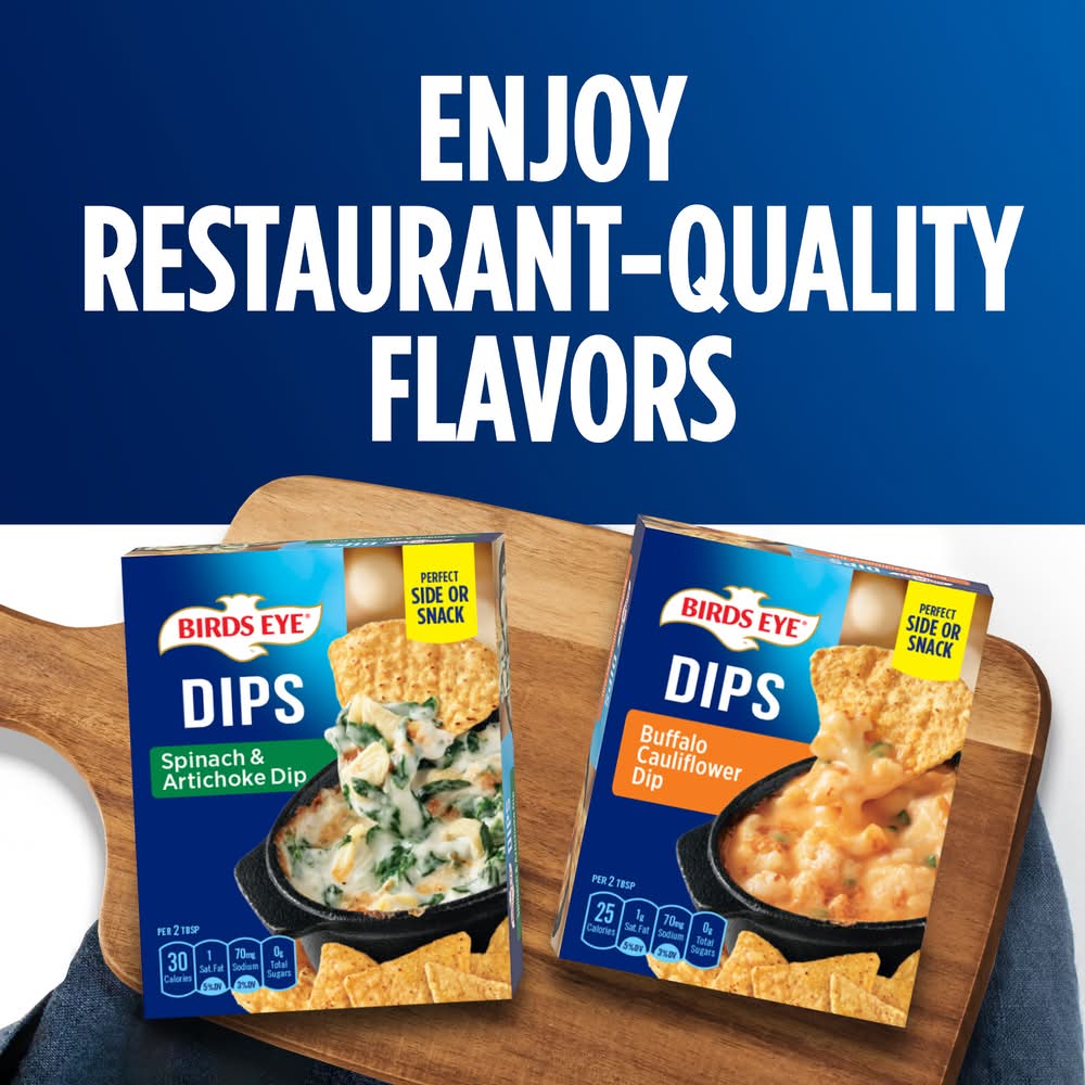If you’re looking for a quick and easy snack, you can never go wrong with a classic. Birds Eye Spinach & Artichoke Dip gives you flavorful vegetables mixed with a rich, creamy sauce made from Parmesan and cream cheese for a versatile and delicious side dish. Made to work as a side or a snack, it’s a great solve when the family wants a pre-meal appetizer or a game-time treat. And like any great snack, you don’t have to overthink it ... simply throw it in the microwave and serve; it's that easy. It's good to eat vegetables, so Birds Eye makes vegetables good to eat.