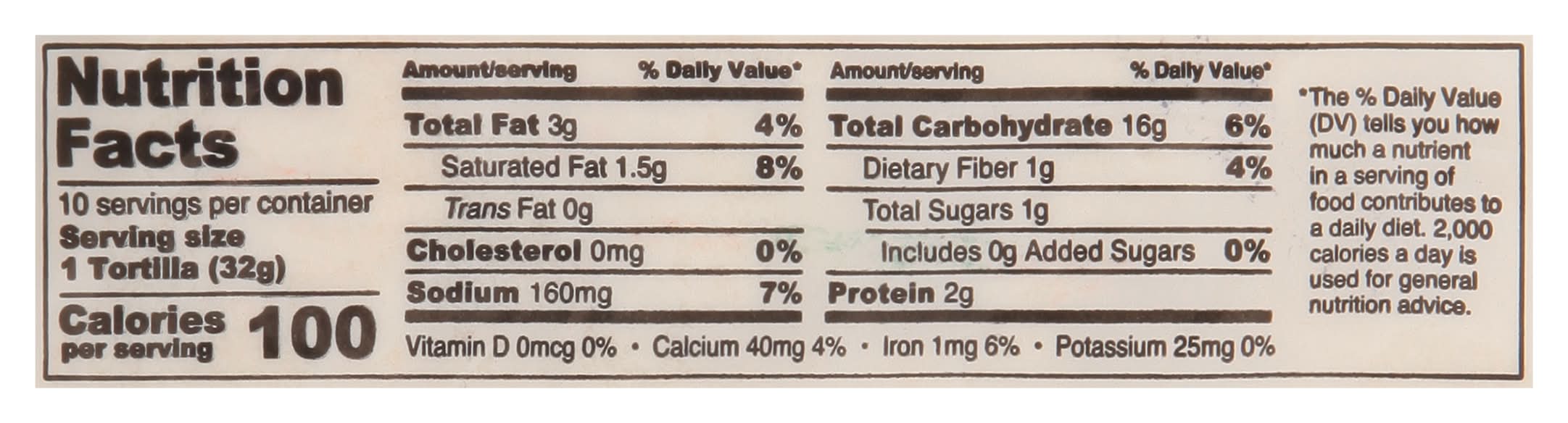 Directions for use: Heating Instructions: Pre-heated skillet or pan to warm, one tortilla at a time. Place 4 to 6 tortillas in a microwave, separated by damp paper towel. For 30 to 45 seconds. Refrigerate after opening. Press to close. Tear strip to open. Storage recommendation: Refrigerate after opening