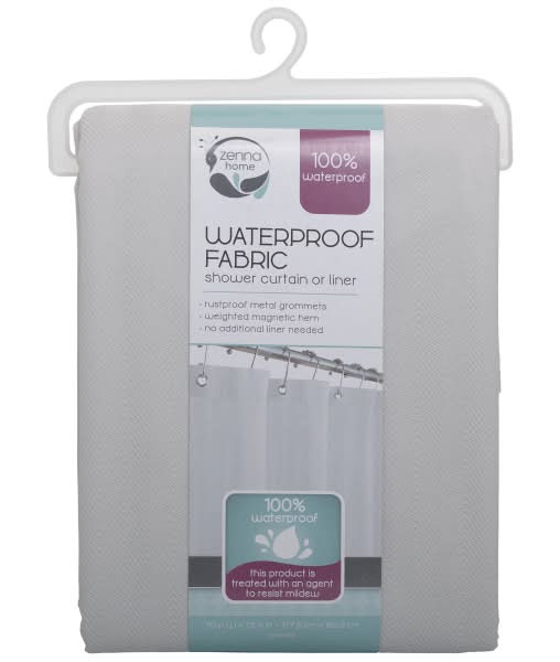 Zenna Home Herringbone Waterproof Fabric Shower Curtain or Liner, 70" x 72", Gray