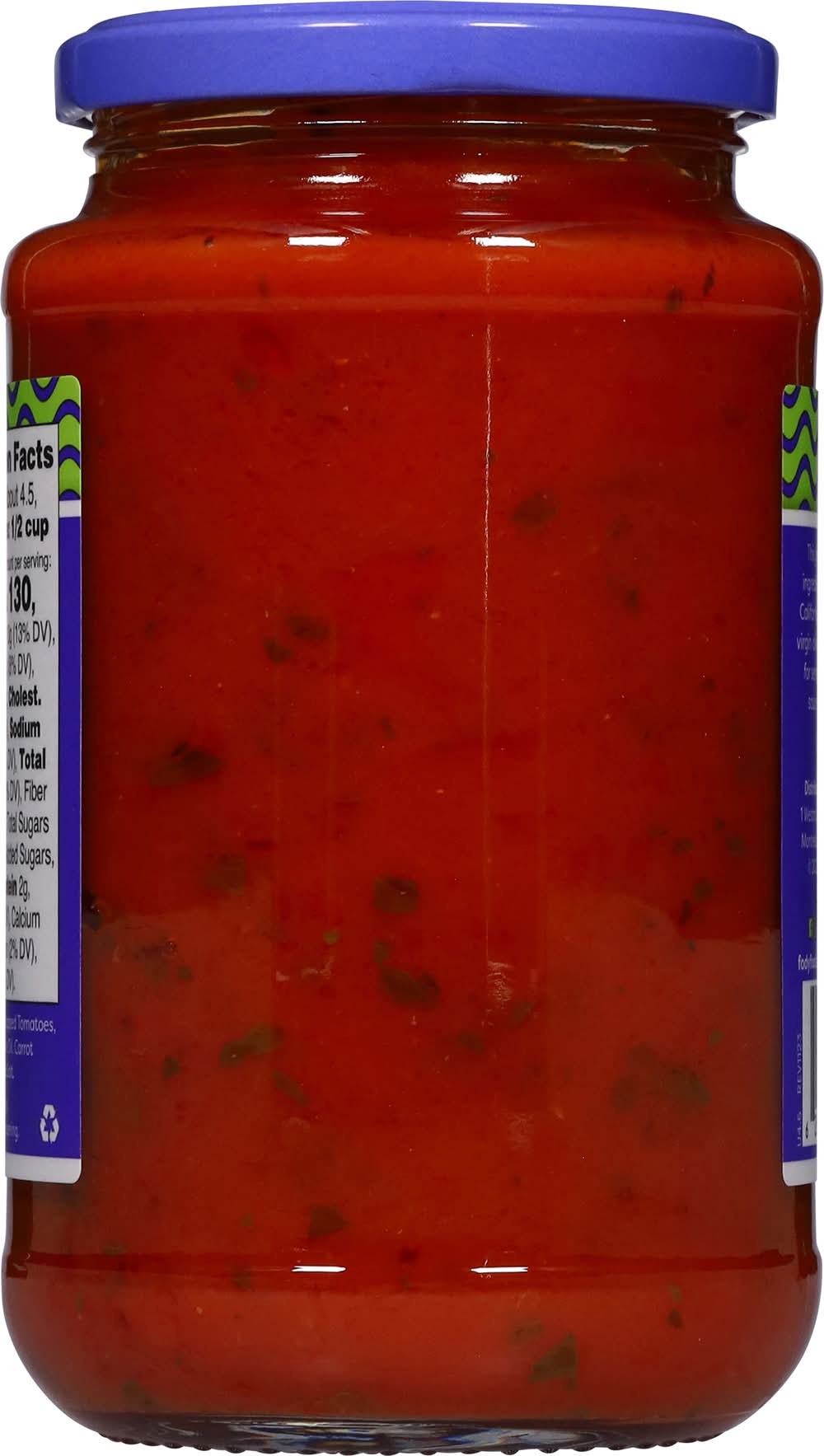 Gluten free. Certified vegan. Vegan.org. No added sugar (Not a low calorie food. See nutrition facts for sugar and calorie content). Non-GMO Project verified. nongmoproject.org. No onion! No garlic! Bloat free. This jar contains only real ingredients like vine-ripened California tomatoes and extra virgin olive oil. Specially crafted for sensitive stomachs, it's a sauce to be loved by all. Packaging: Reusable