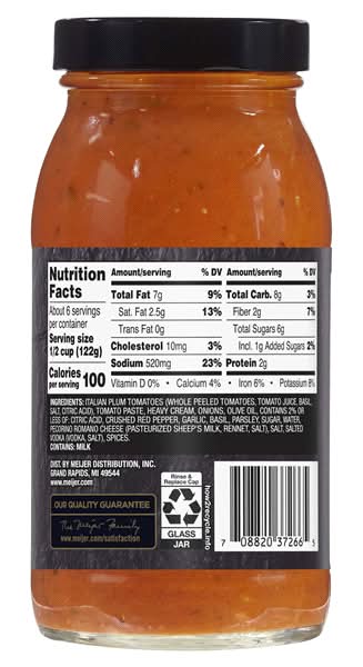 Frederiks By Meijer Arrabbiata Vodka Artisan Pasta Sauce is a meticulously crafted pasta sauce that features Italian plum tomatoes and heavy cream, enriched with a splash of vodka to enhance its flavor. This sauce contains crushed red peppers, adding a distinctive kick that complements pasta dishes. It is designed to deliver an authentic Italian taste, ideal for those who appreciate the art of Italian cooking.