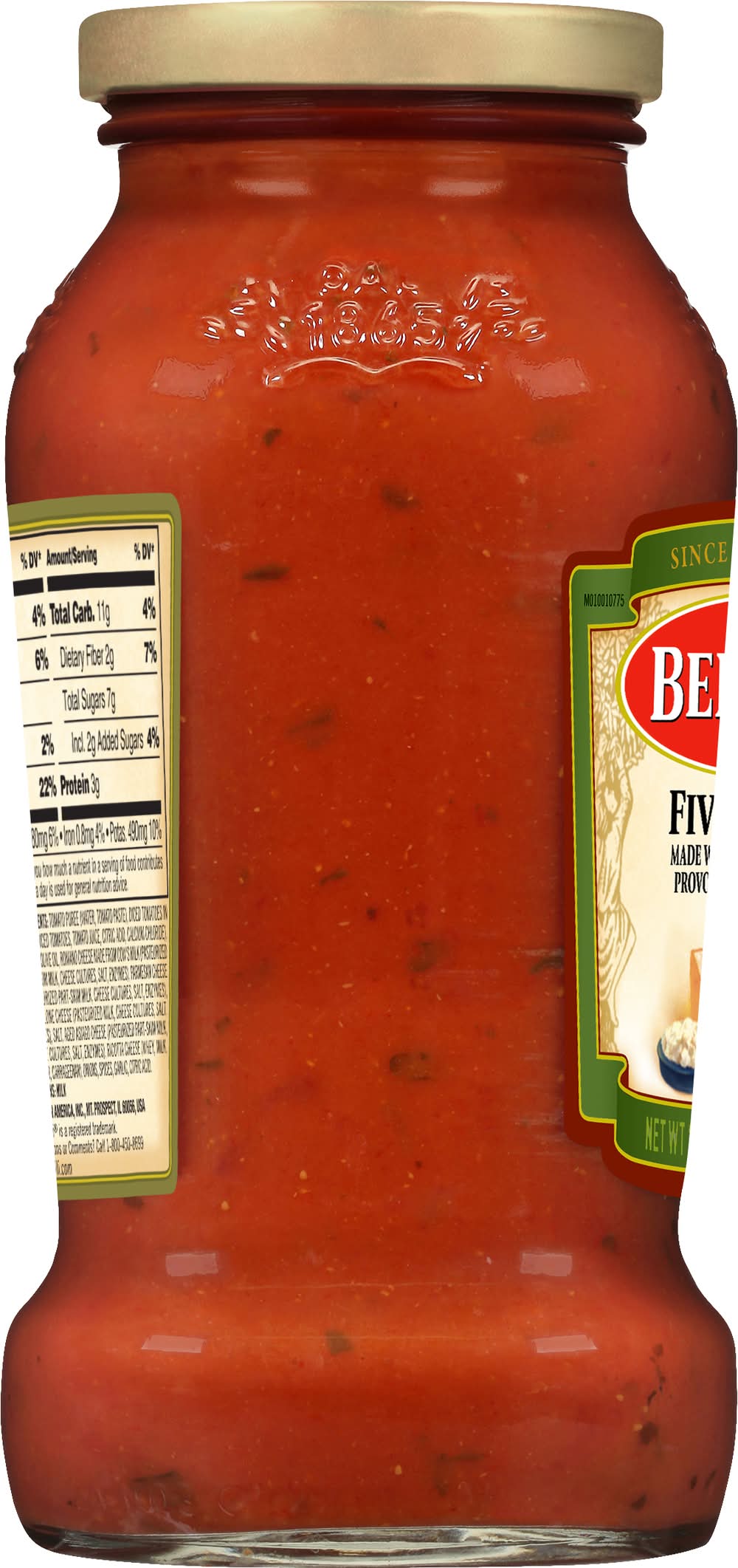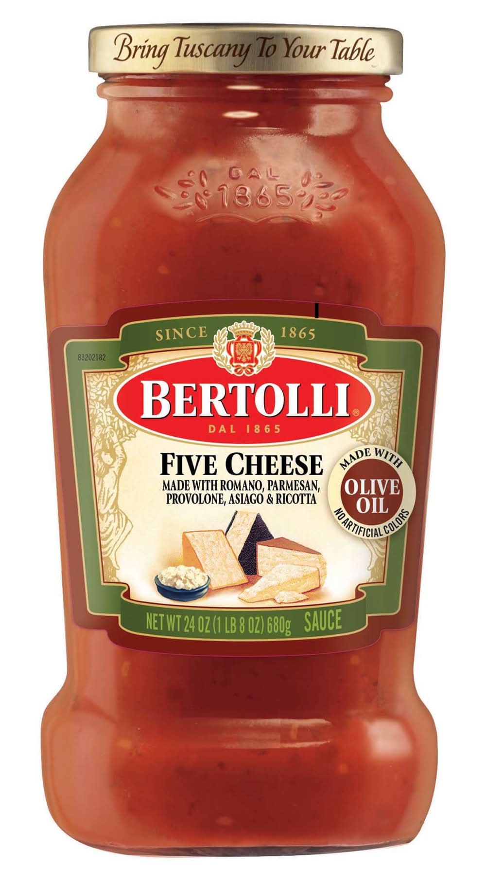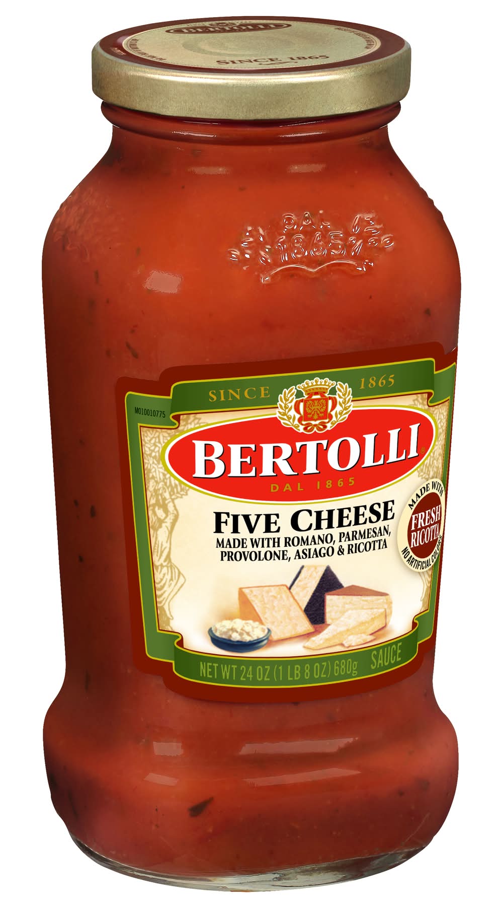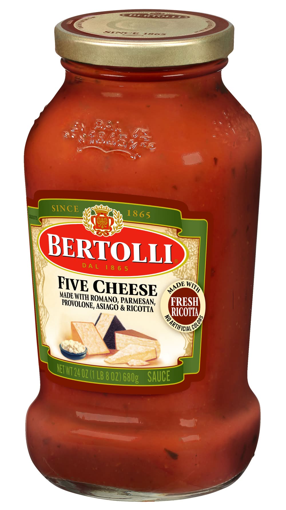 Ingredients: Water, Tomato Paste, Diced Tomatoes, Tomato Juice, Calcium Chloride, Citric Acid, Sugar, Olive Oil, Romano Cheese Made From Cow's Milk, Parmesan Cheese, Provolone Cheese, Salt, Aged Asiago Cheese, Ricotta Cheese, Onions, Basil, Garlic, Spices Contains: Milk