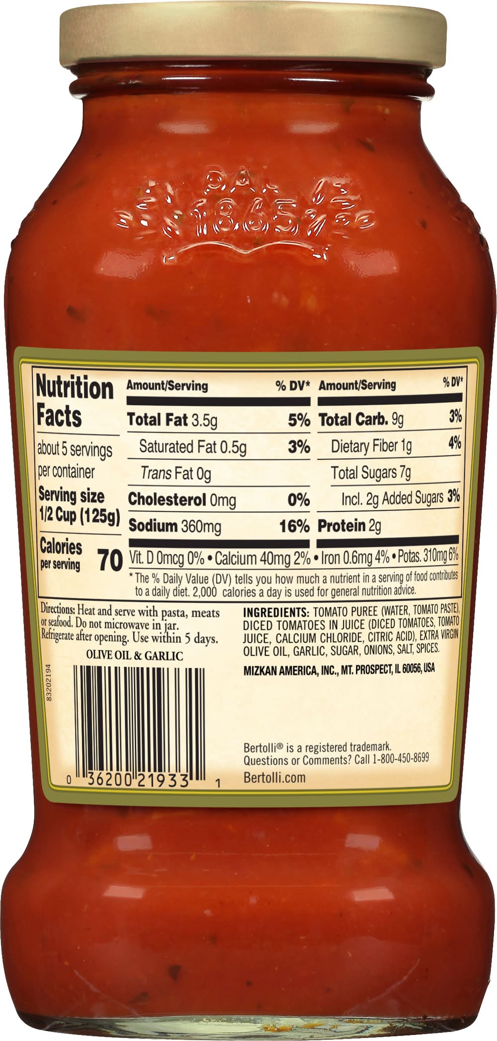 Non-GMO Project verified. Since 1865. No artificial colors. Taste the Tuscan difference. Flavor: Olive oil & garlic