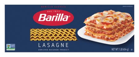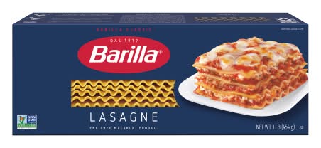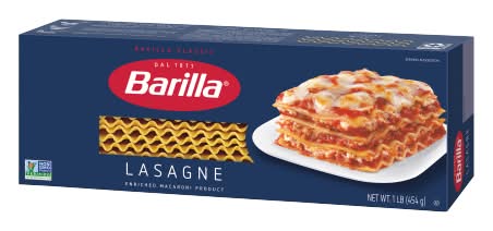 Barilla wavy lasagne pasta is an american favorite. Each pasta sheet is wide and ridged to hold all your favorite lasagne ingredients and is made from the finest durum wheat to bring the perfect pasta texture and flavor to your lasagne creation. Barilla wavy lasagne pasta is made with non-gmo ingredients. Barilla is a family-owned italian company making pasta since 1877. Barilla brings you the best pasta made with care and the highest quality ingredients; barilla works to bring you the best pasta that cooks perfectly al dente every time. Our wavy lasagne is made from the finest durum wheat and is non-gmo project verified and kosher certified. Perfect for pairing with your favorite pasta sauce. Get inspired with barilla! Enjoy the full range of barilla pasta and pasta sauces, including ready pasta, protein and pasta, whole grain pasta, gluten free pasta, chickpea pasta and red lentil pasta. • Barilla, Northbrook,IL,60062 • Packaging: Reusable