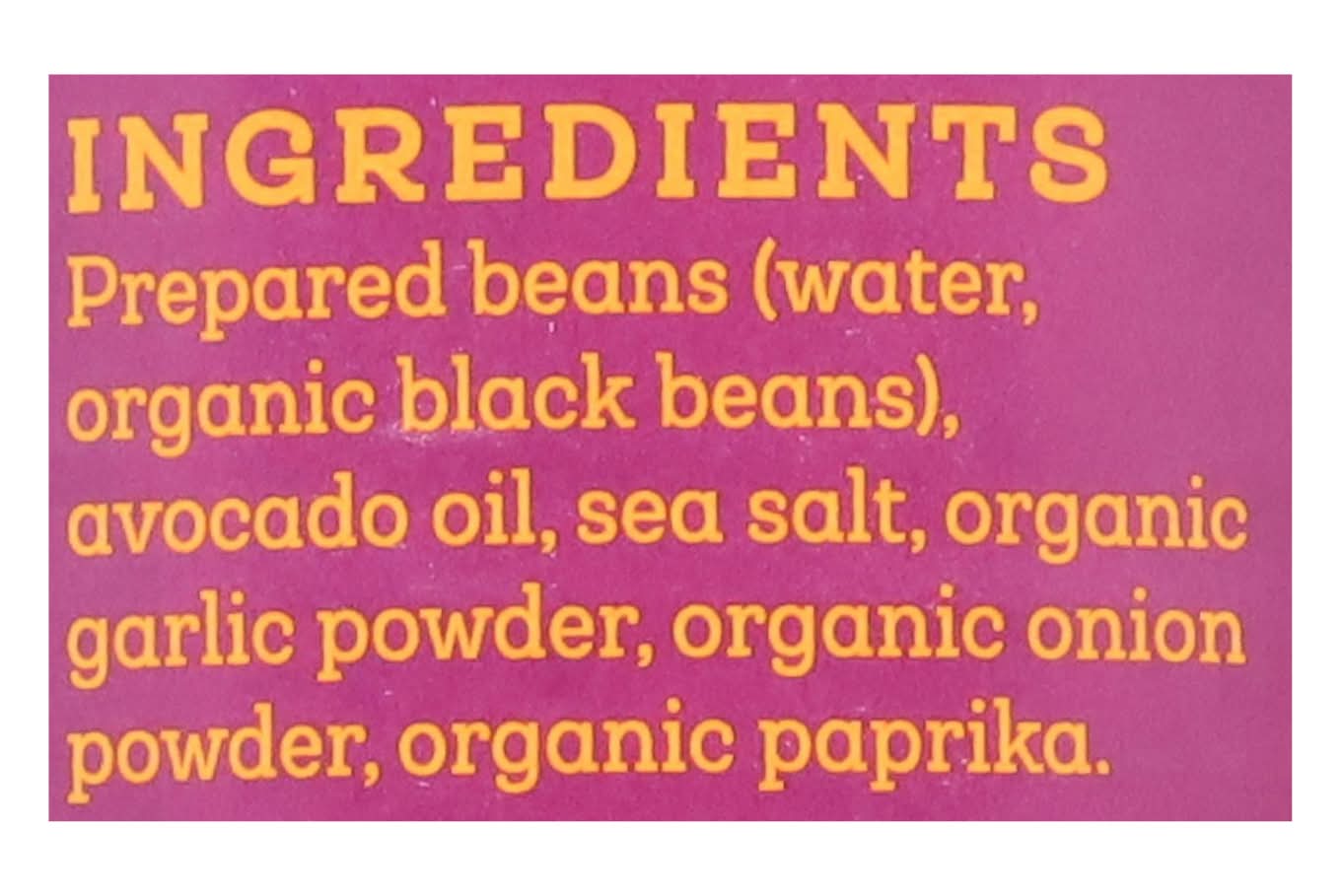 Ingredients: Prepared Beans (Water, Organic Black Beans), Avocado Oil, Sea Salt, Organic Garlic Powder, Organic Onion Powder, Organic Paprika