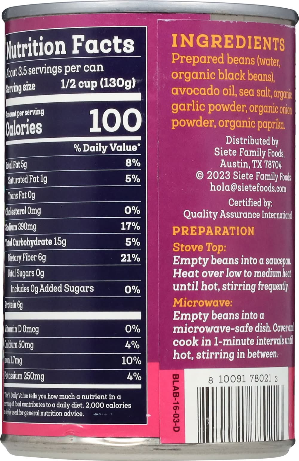 Black Beans, Vegan Refried • Number of servings: 3 • Siete Family Foods, Austin, TX 78731
