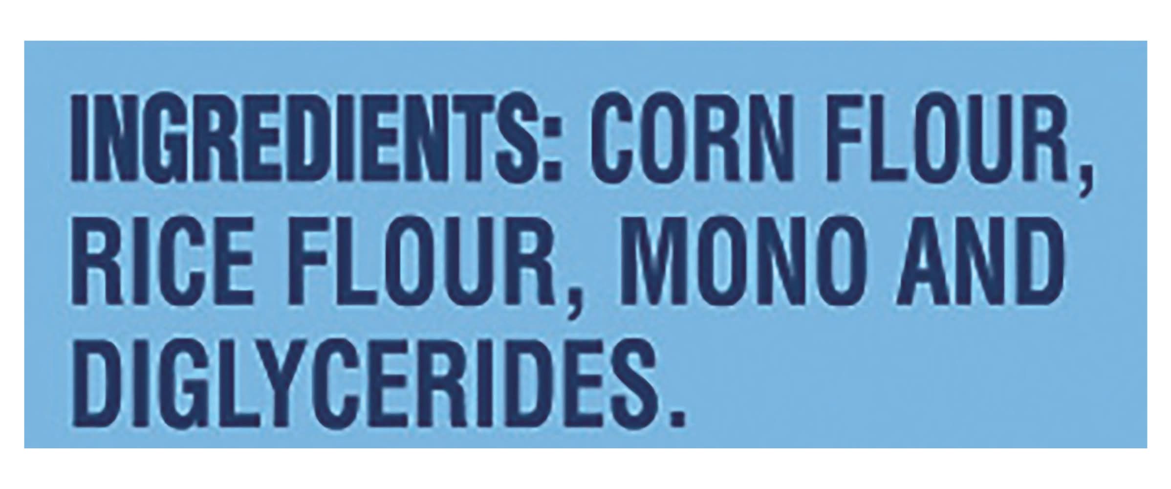Ingredients: Corn Flour, Rice Flour, Mono and Diglycerides Contains: Corn