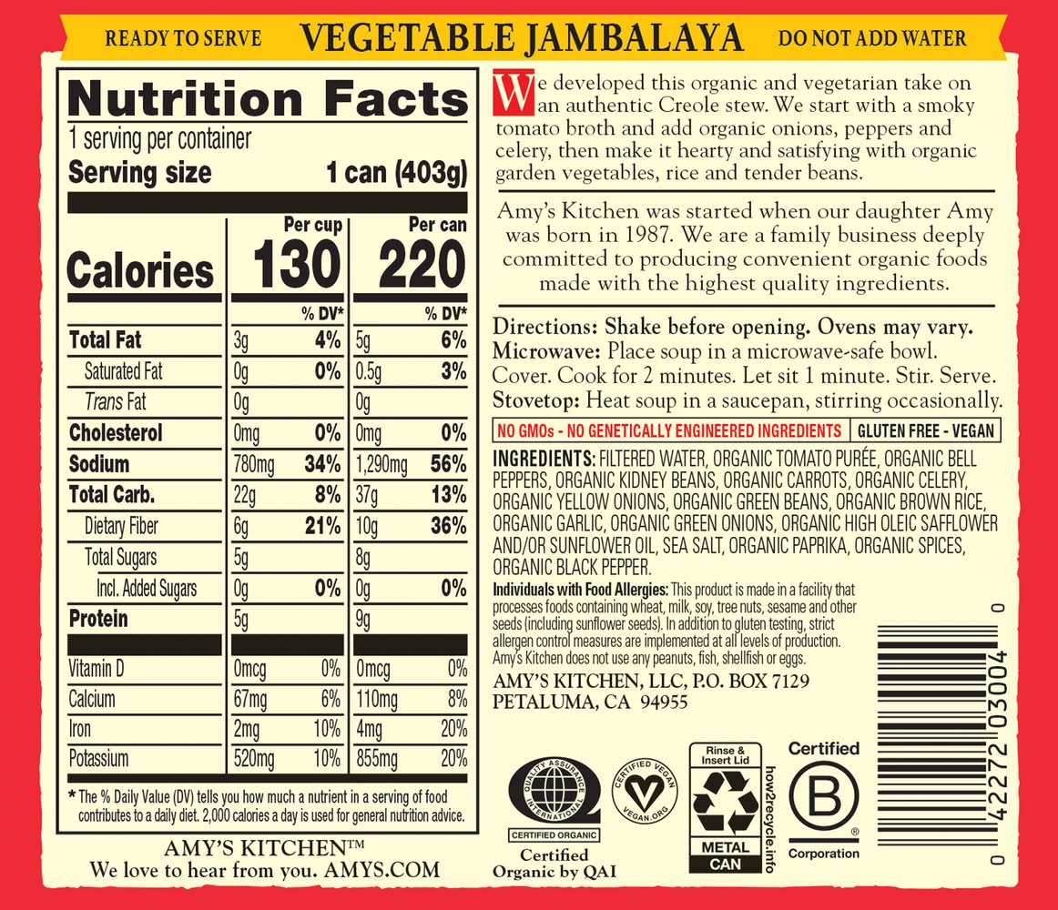 Amy's Kitchen Organic Soups Vegetable Jambalaya With Red Beans (14.2 oz)