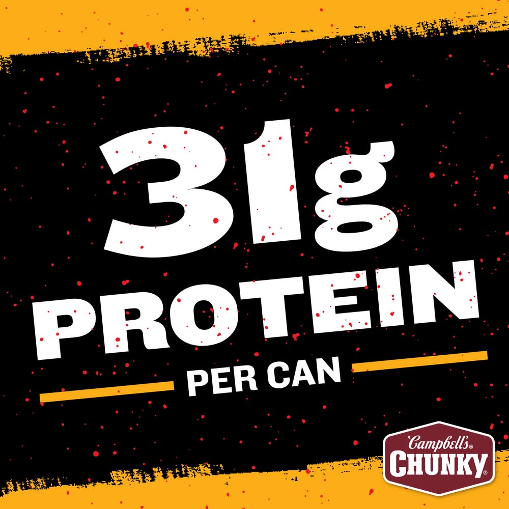 Turn up the heat on your hunger with Campbell’s Chunky Spicy Mexican-Style Chili With Beans. This spicy hot chili is packed with black beans, pinto beans, corn, seasoned beef and pork crumble for a bold, south-of-the-border kick. With 31g of protein per can, it’s a satisfyingly spicy chili that fuels even the heartiest of appetites. Campbell’s Chunky Chili is a year-round pantry staple and the MVP of game day snacks, delivering a winning combination of flavor and convenience. Enjoy a warm bowl of this canned chili with beans and meat when watching the game from home, or serve it over hot dogs, nachos, baked potatoes, and other tailgating snacks. To prepare the microwave chili, simply pour into a microwave-safe bowl and heat — do not add water. Or heat in a saucepan on the stove, stirring occasionally. Whether you’re a football fan or simply craving something hearty, Campbell’s Chunky Spicy Mexican-Style Chili With Beans will keep you feeling full and satisfied from kickoff to the final whistle. Make every game day a winner with Campbell's Chunky.