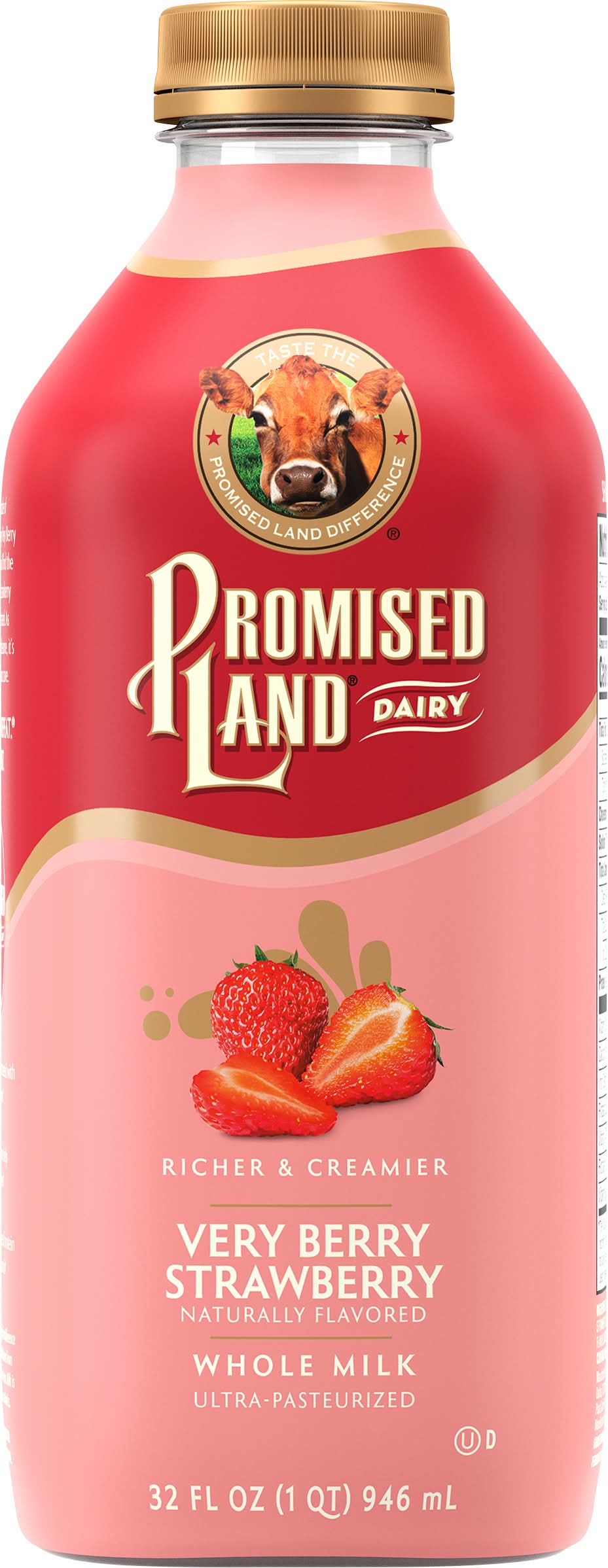 Promised Land Dairy Richer & Creamier Whole Milk, Very Berry Strawberry (32 fl oz)
