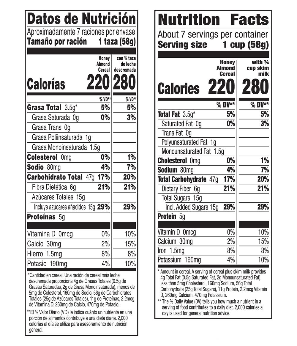 Honey Almond Cereal • Flavor: Honey-almond • Number of servings: 7 • Packaging: Reusable