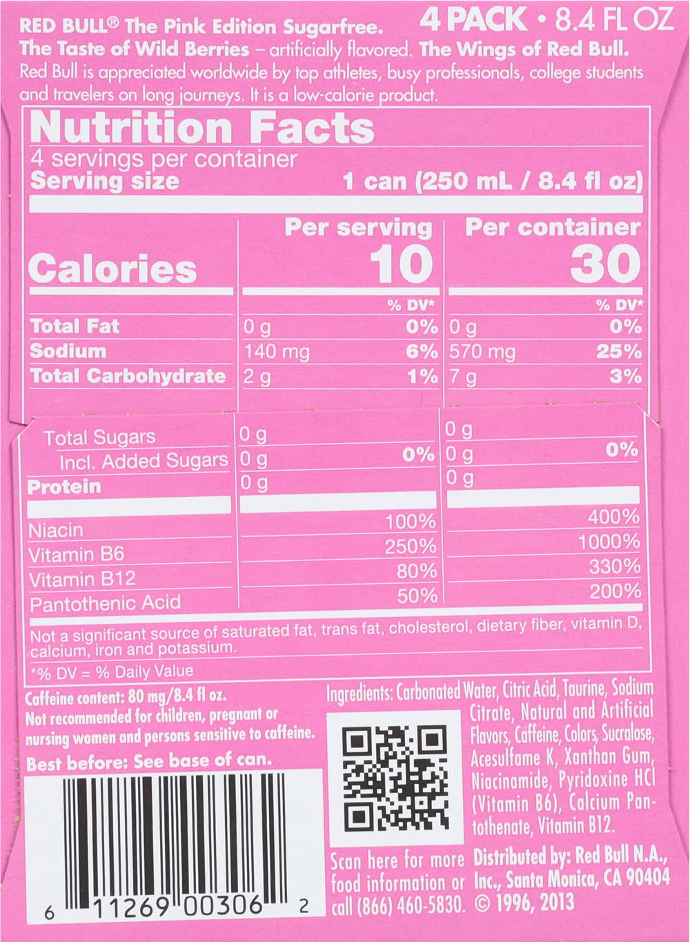 Red Bull The Pink Edition Sugarfree Energy Drink, Wild Berries (4 x 8.4 fl oz)