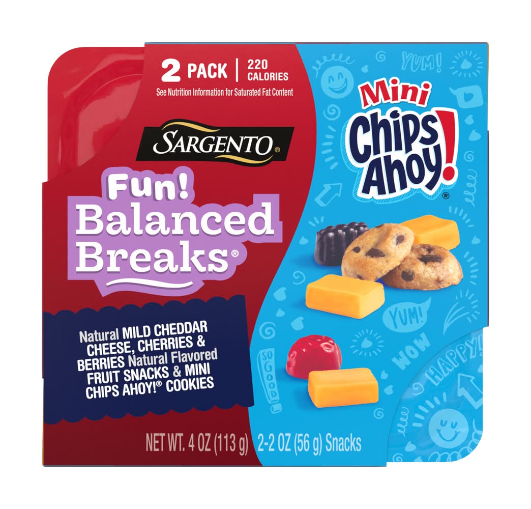 Sargento Balanced Breaks Mild Cheddar Cheese,Raisins and Mini Chip Ahoy, Cocoa Yogurt (2 oz, 2 ct)