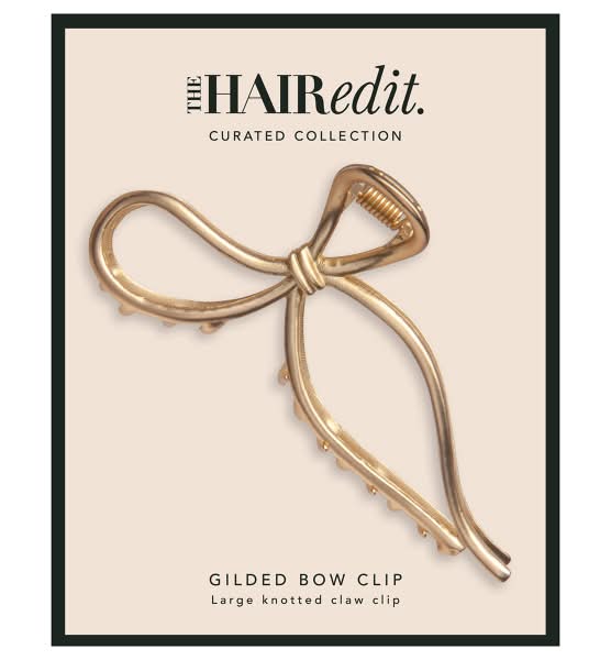 Put a bow on it. This delicate bow-shaped claw clip features a pretty soft gold finish that goes with everything. This sturdy yet slim claw clip provides a firm, all day hold without being heavy. Perfect for a half-up or full updo, this golden bow claw clip is the on-trend touch your hair deserves.