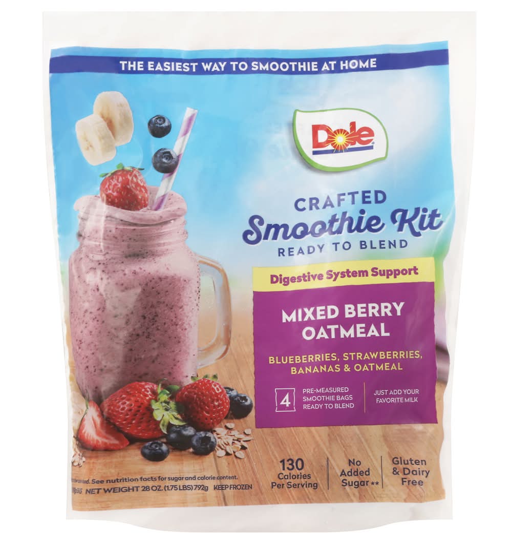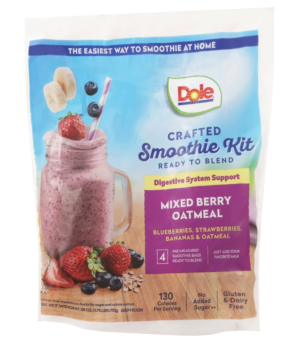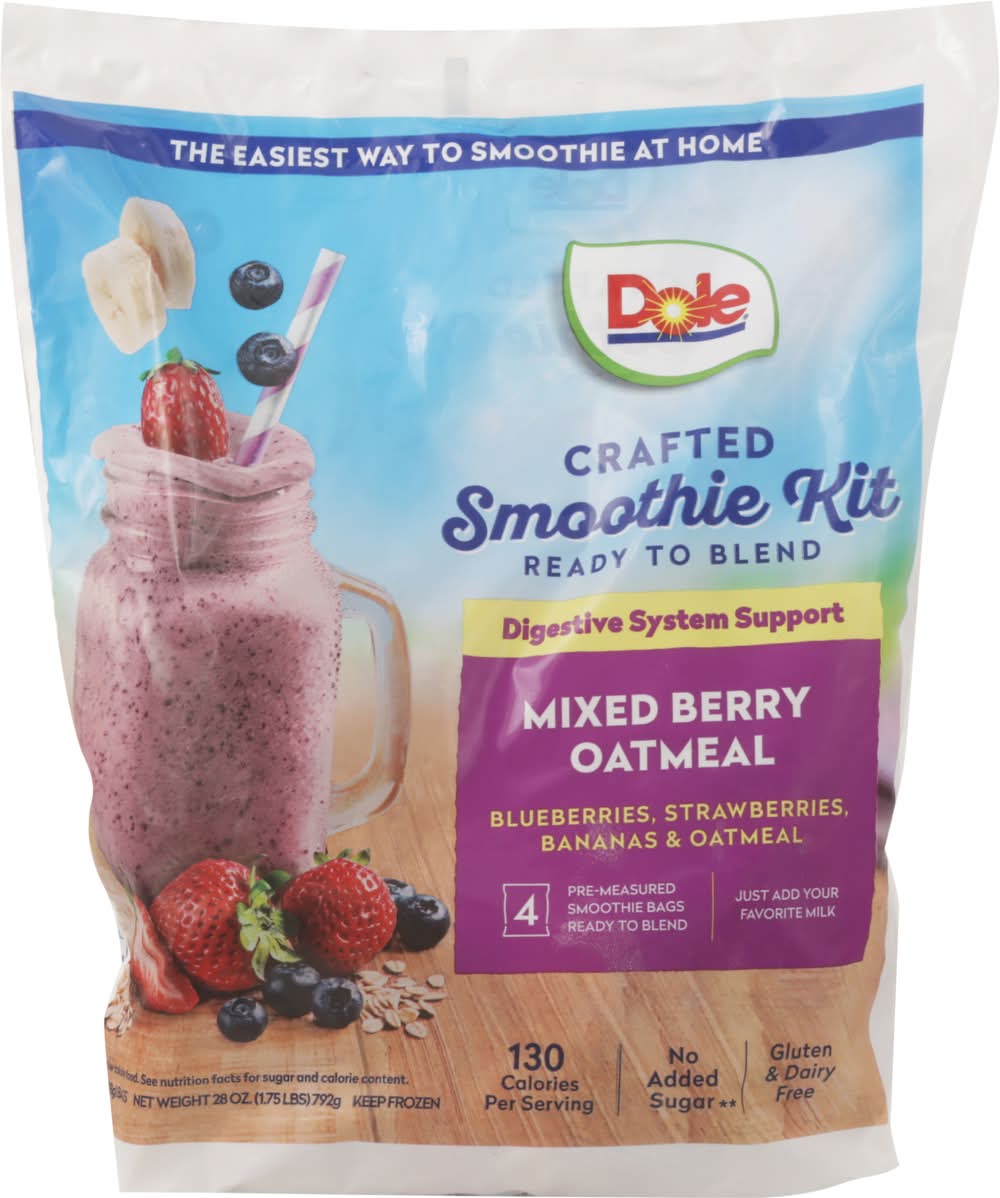 Dole Crafted Smoothie Kit, Blueberries - Strawberries - Bananas - Oatmeal (28 oz)