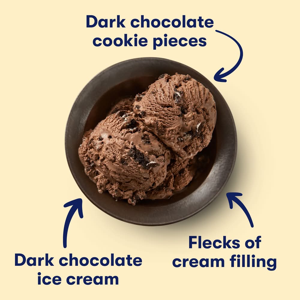 Dark chocolate ice cream with dark chocolate cookie pieces and flecks of cream filling  there's nothing cookie cutter about it. Flavor: Dark chocolate cookies-cream