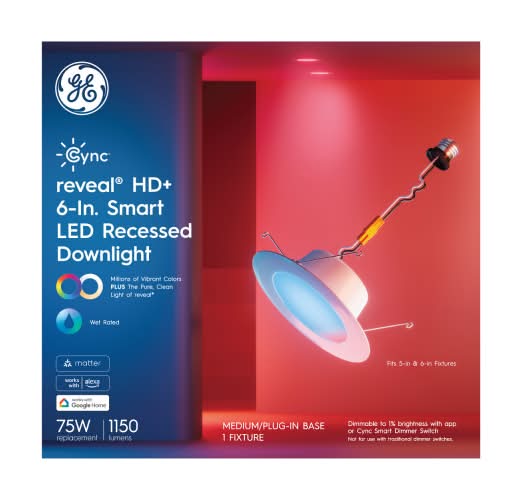 GE Cync Reveal Hd+ Full Color Smart Led Recessed Downlight 1150 Lumens, 6 in