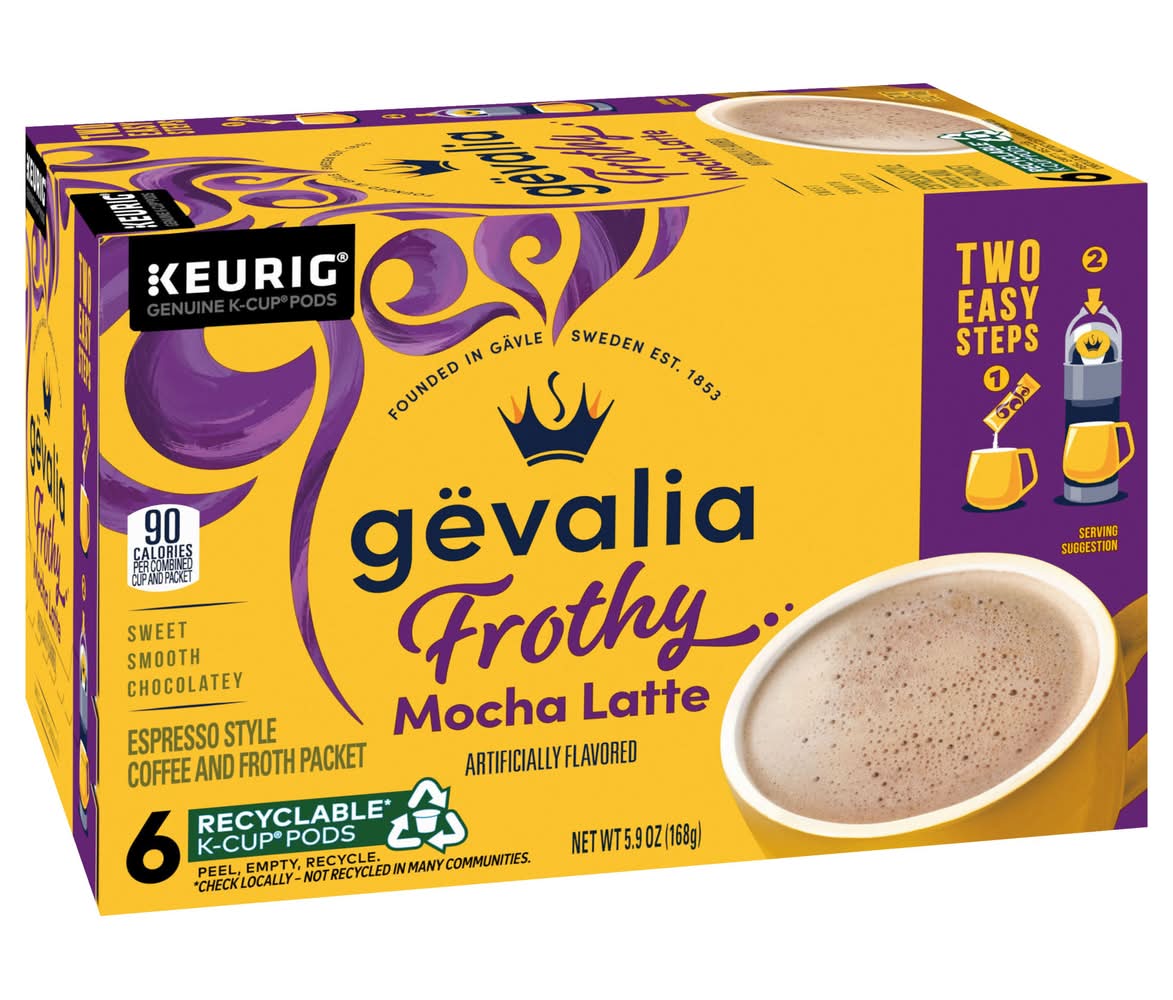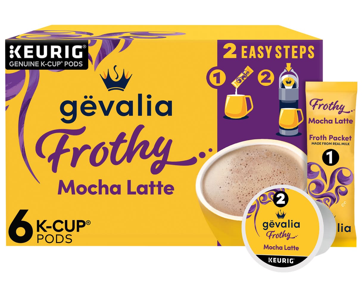 Gevalia Frothy 2-step Espresso Style K-Cup Coffee Pods & Froth Packets Kit, Mocha Latte (5.9 oz, 6 ct)