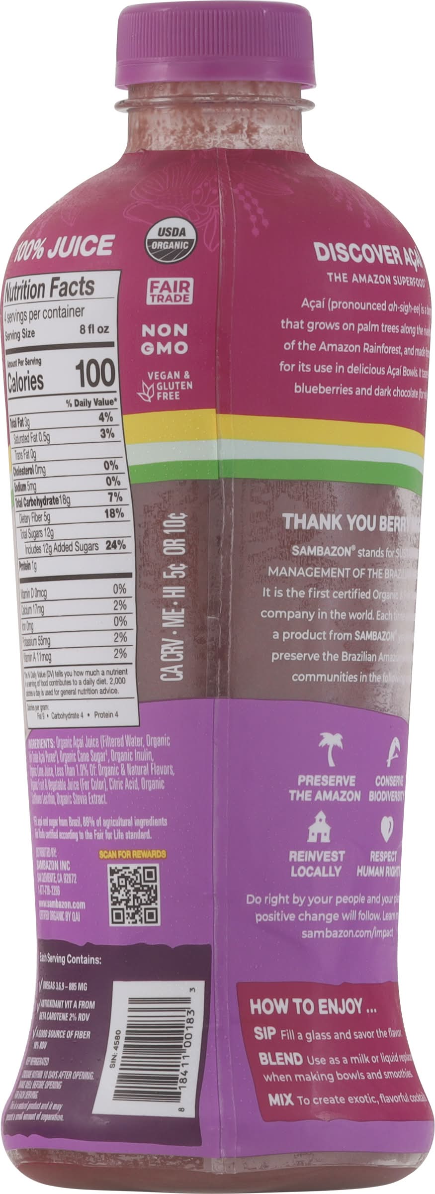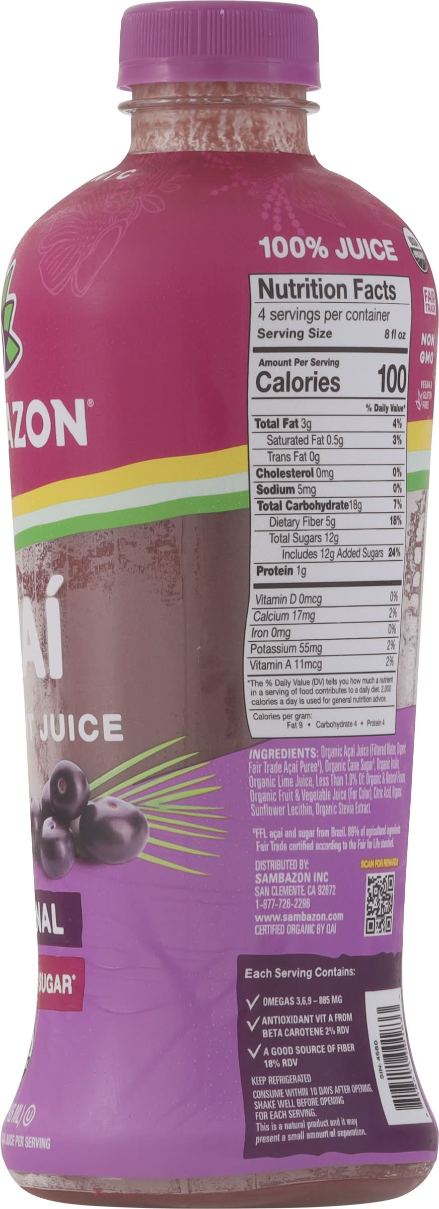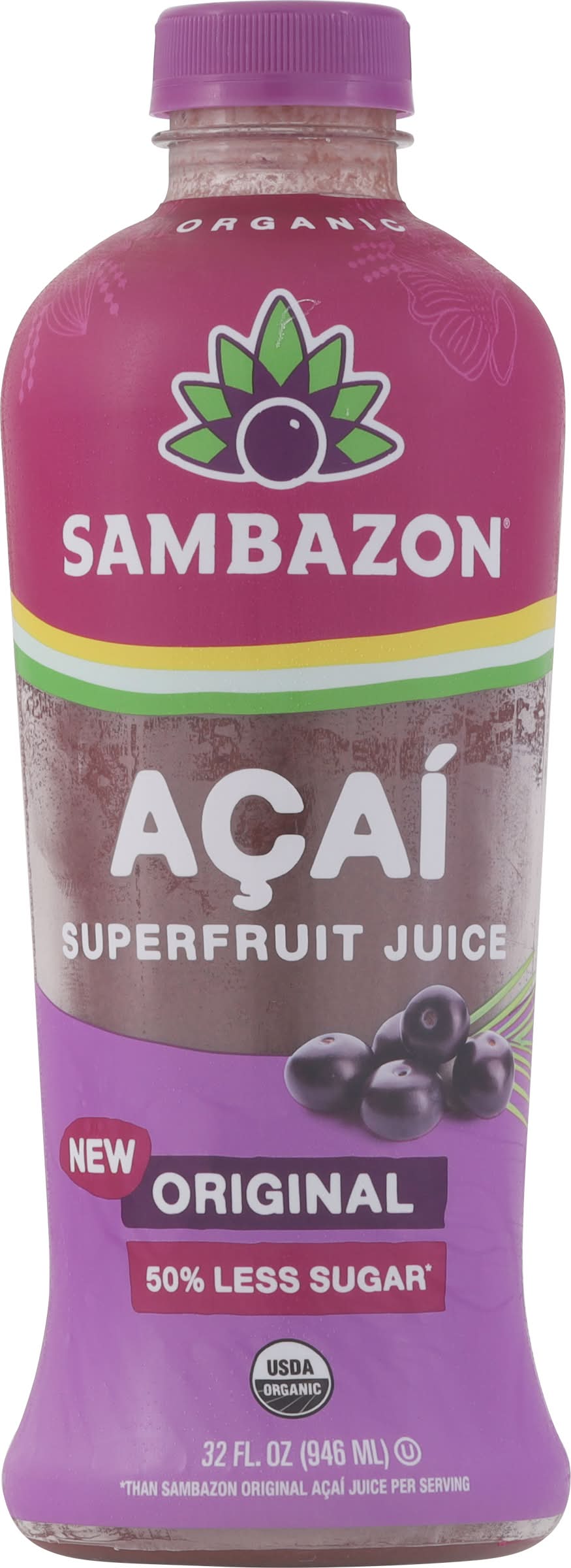 Sambazon Original 50% Less Sugar Superfruit Juice, Açai (32 fl oz)