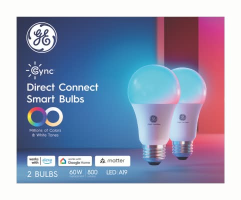 General Electric Cync Full Color Direct Connect Smart 60W EQ A19 Bluetooth/Wifi Enabled, Works With Alexa, Google Assistant without a Hub Dimmable Light Bulb 2-pack