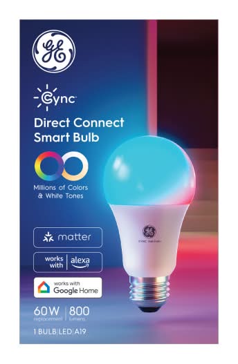 General Electric Cync Full Color Direct Connect Smart 60W EQ A19 Bluetooth/Wifi Enabled, Works With Alexa, Google Assistant without a Hub Dimmable Light Bulb 1-pack