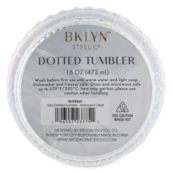 BKLYN STEEL TUMBLER GLASS DOTTED CLEAR 16OZ