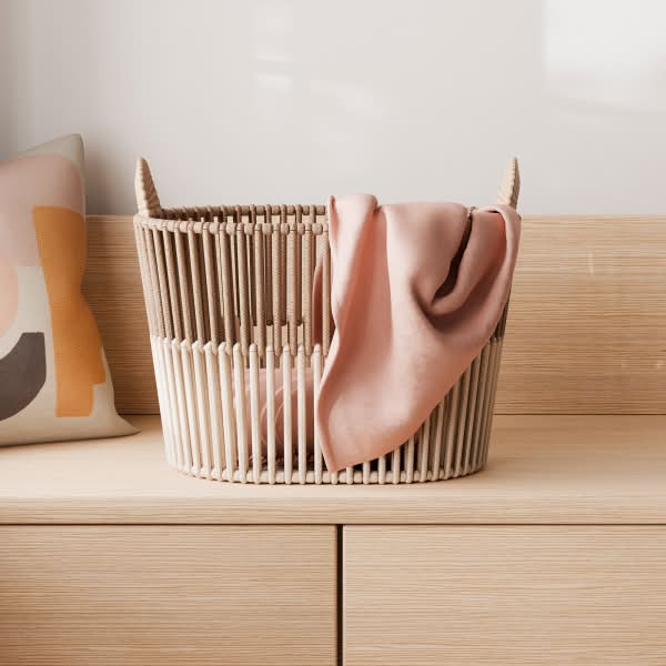 RGI Home Woven Coiled Rope Decorative Storage Basket, Beige-Ivory