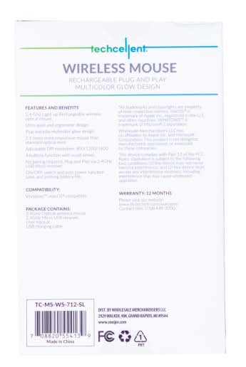 TECHCELLENT Wireless Rechargeable Plug & Play Mouse 2.4 Ghz
