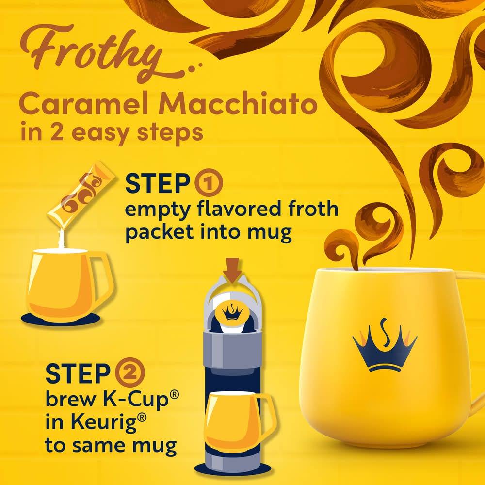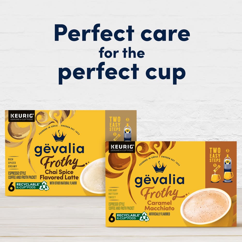 Gevalia Frothy Espresso Style K-Cup Coffee Pods & Froth Packets Kit, Caramel Macchiato (6.4 oz, 6 ct)
