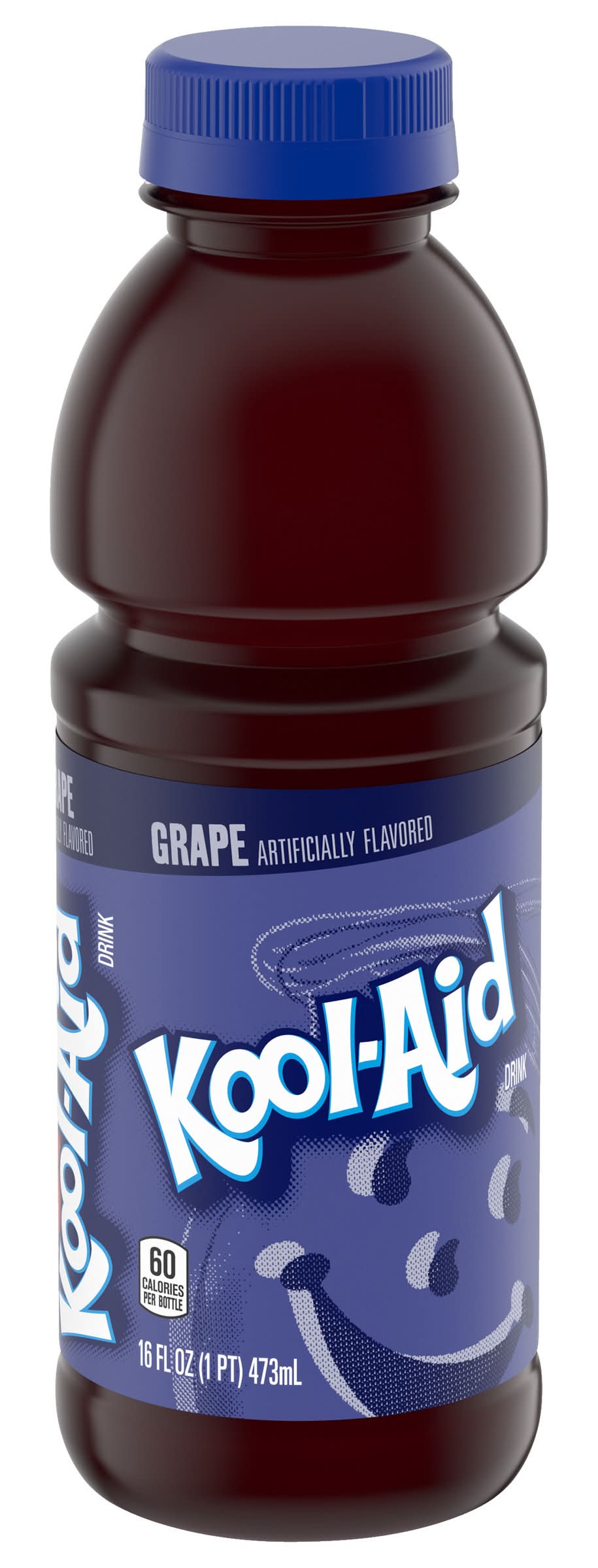 Kool-Aid Artificially Flavored Grape Drink is a delicious way to stay hydrated. Ready-to-drink bottle delivers the classic flavor of powdered Kool-Aid flavored drinks in a liquid form for instant enjoyment. Quench your thirst with the sweet taste of our artificially flavored grape drink. Our grape drink is an excellent source of Vitamin C and contains A great choice for the whole family, our individually sealed drinks make it easy to enjoy a refreshing pre-made beverage. Enjoy our bottled drinks at work or at home, or fill a thermos for a lunch. Store our 16 fluid ounce bottle of grape flavored drink in the fridge so it's always cold and ready when you're craving a mouthwatering treat on a hot day. Flavor: Grape artificially flavored