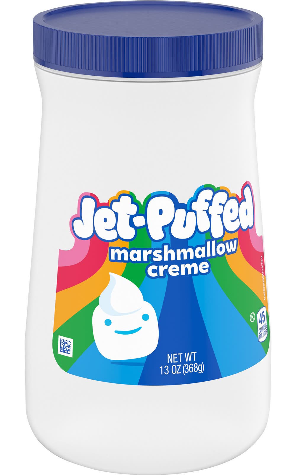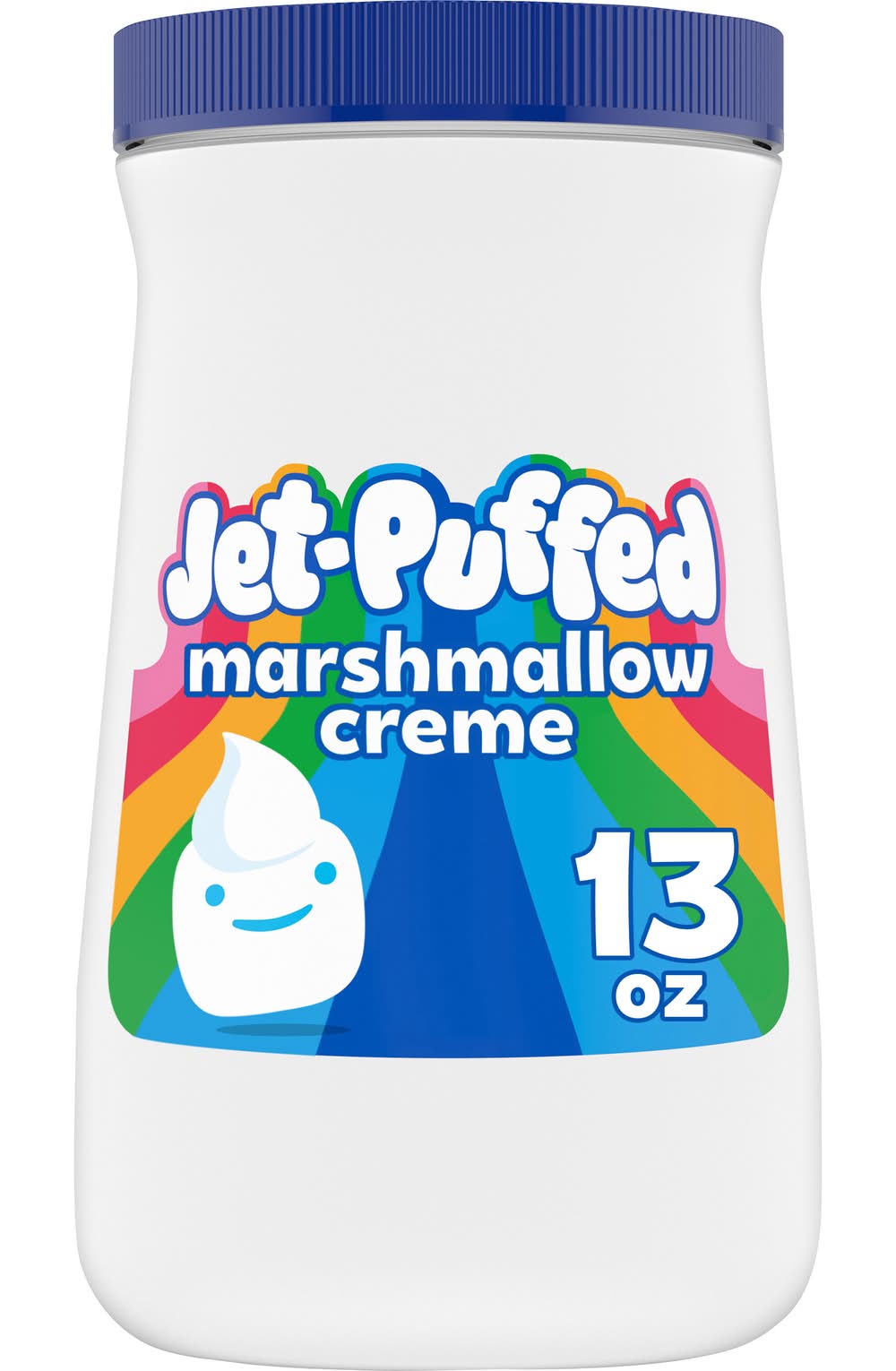 Jet-Puffed Marshmallow Creme is a delicious, versatile and easy dessert topping. Our marshmallow spread delivers the classic sweet taste you love with a creamy texture that's perfect for spreading. Marshmallow Creme makes a fun treat for kids or a mouthwatering addition to all your favorite dessert recipes. Add to a peanut butter sandwich for a classic Fluffernutter, or use it in an easy marshmallow cream frosting recipe. You can even use it to create fudge too! Jet-Puffed Marshmallow Creme is packaged in a resealable 13-ounce jar to keep flavor locked in until you're ready to enjoy. For easy removal of product, dip a spoon in hot water.