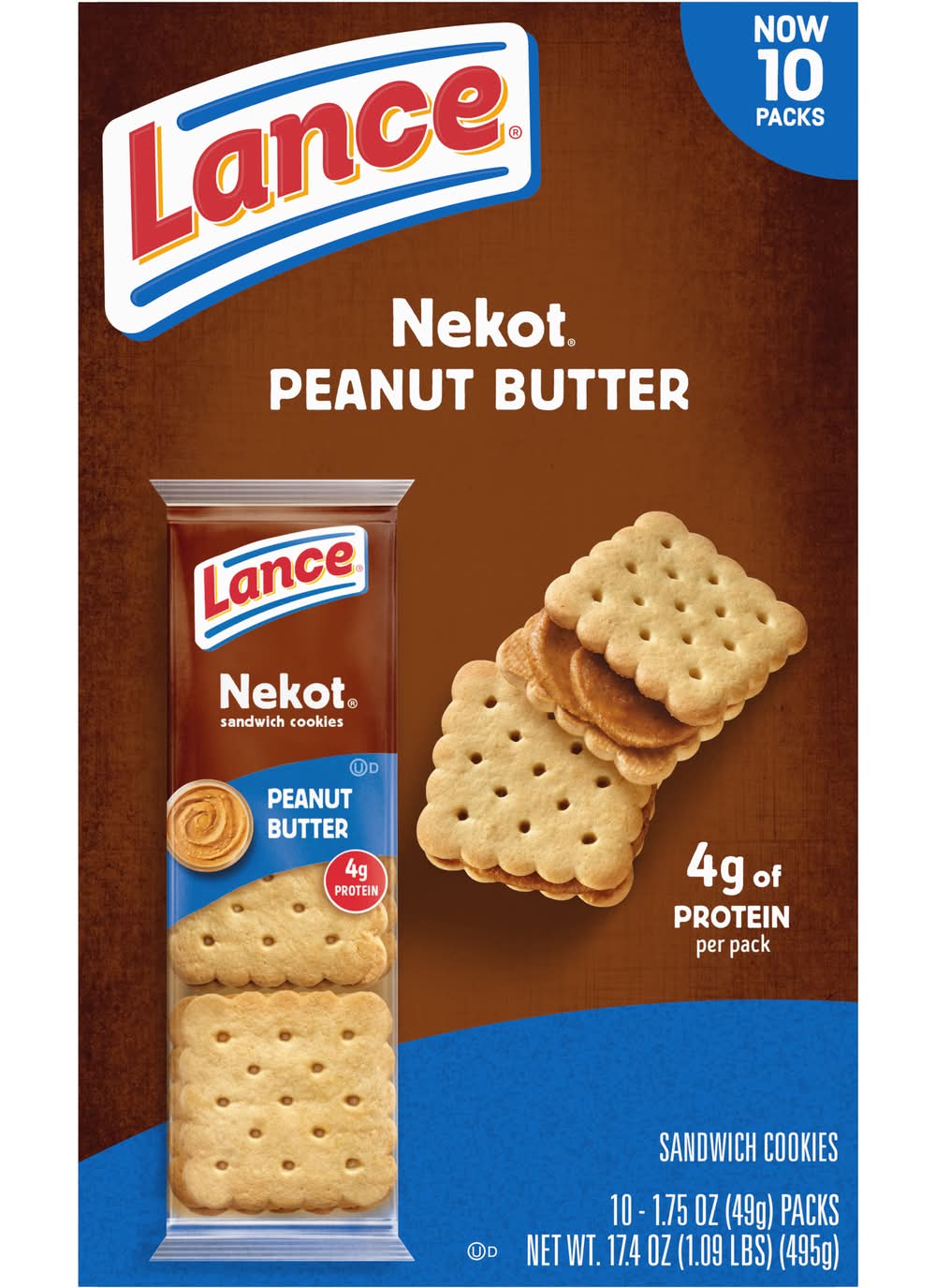 Get ready for a totally tasty treat! With Lance Nekot Peanut Butter sandwich cookies, we combined the best of our cookie treats with the irresistible, creamy flavor of our real peanut butter filling. All wrapped up in single-serve packs, you get the perfect snack, or an ideal dessert treat. Pick up an 10 count box to try them for yourself and see what you are missing. At Lance, sandwiches mean more: they aren’t just two somethings with whatever in the middle. A Lance sandwich is two awesomes with incredible in the middle — and we’ve made them that way for over 100 years. So, get ready for more of that irresistible goodness that can make any moment immediately better for you. Whether you’re taking a break or need a quick pick-me-up during your day, enjoy the real peanut butter filling that comes with the amazing taste you know and love from Lance. Your one and only Lance Sandwich crackers are the king of all sandwich crackers — and cookies. Bring it! Flavor: Peanut butter