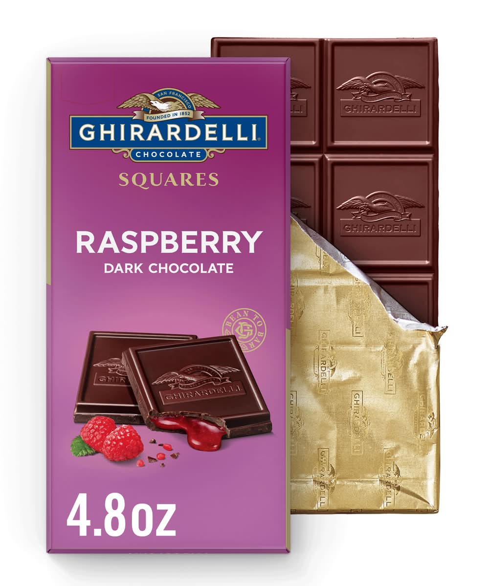 GHIRARDELLI Raspberry Dark Chocolate Squares Bar, 4.8 Oz Bar Flavor: Raspberry