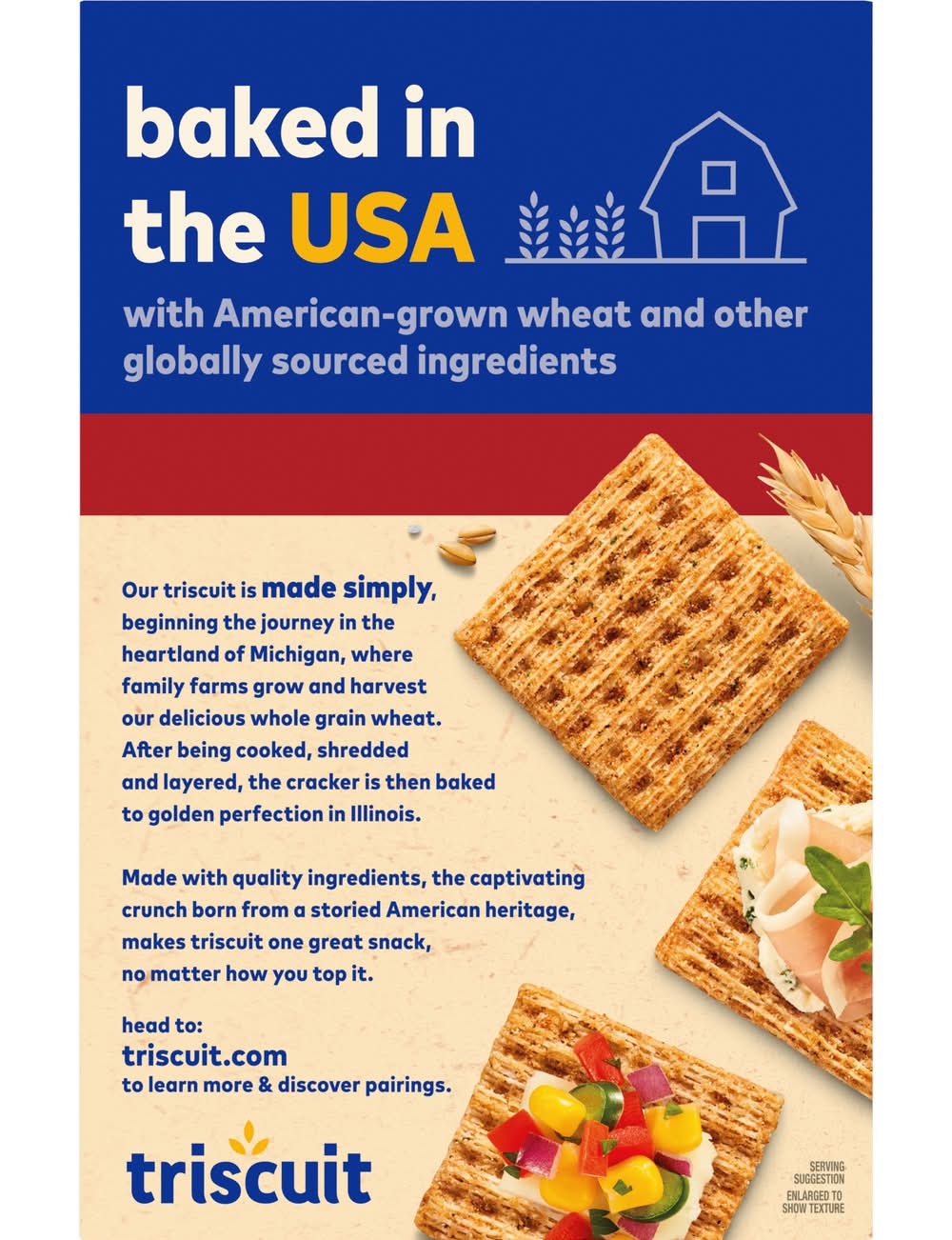 Triscuit Fire Roasted Tomato & Olive Oil Whole Grain Wheat Crackers are made simply with quality ingredients. Baked to perfection, these snack crackers use 100% whole grain wheat proudly grown in the USA and sunflower oil. The square snack crackers are made with their signature woven texture for a satisfying crunch. Fire Roasted Tomato & Olive Oil Triscuit crackers are Non-GMO Project Verified, made without artificial colors or flavors and a good source of dietary fiber (see nutritional information for fat content) for delicious wholesome goodness. Enjoy the crunch of these delicious crackers on their own, or top with your favorite cheese, fruit, or flavorful spreads. Triscuit cracker snacks cover all of your snacking needs, whether you need lunch snacks for kids, snacks for adults or on the go snacks for traveling. Serve them at parties by creating a delicious charcuterie board featuring Triscuit crackers alongside your favorite cheese, meat, fruit, and vegetables for an easy appetizer.
